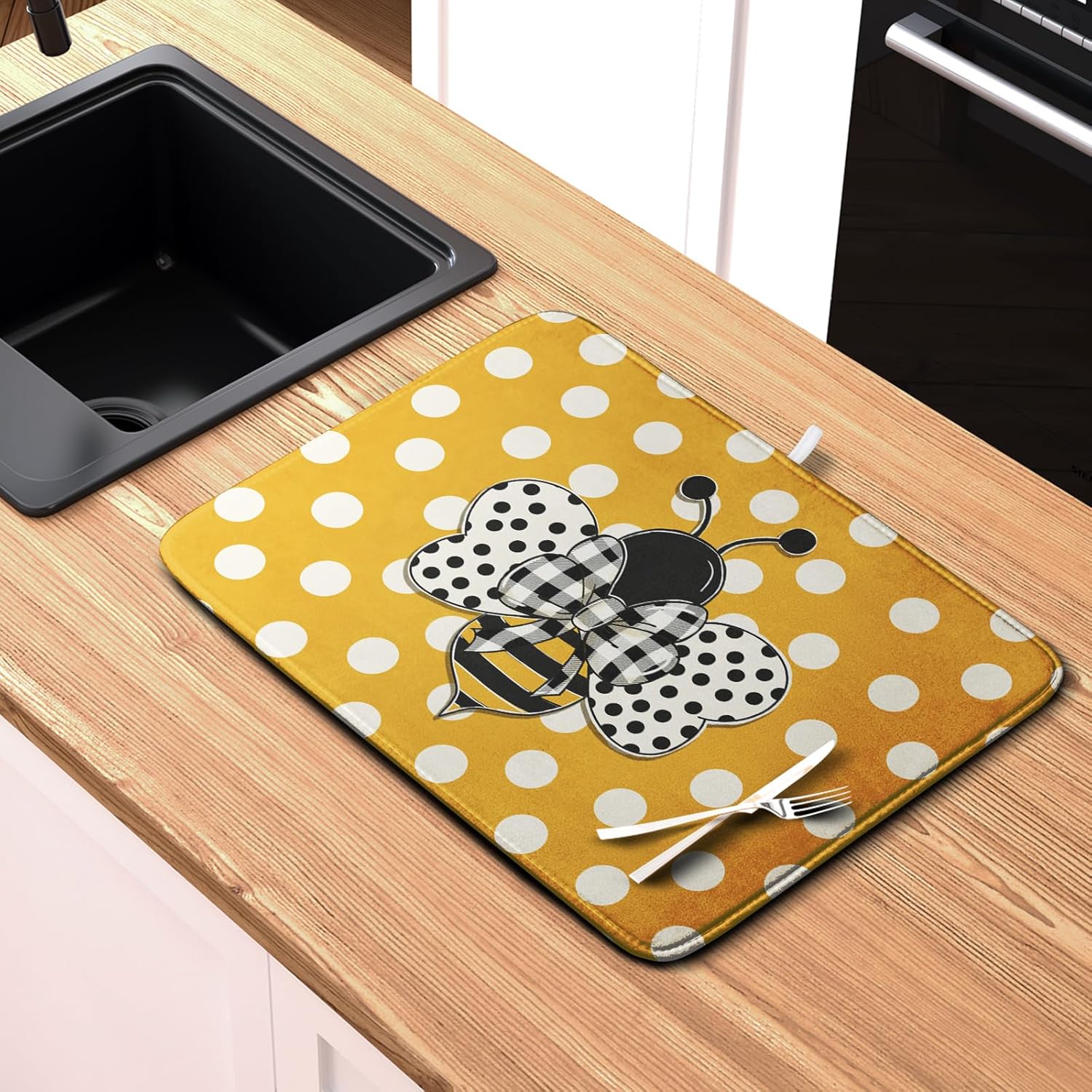 - Ultra Absorbency: The surface of the spring summer bee dish drying mats for kitchen counter is made of absorbent microfiber and the middle is made of composite sponge, absorbs 4X its weight in water, keep your counter dry. Absorbent, Colorful, Reversible, do not fade