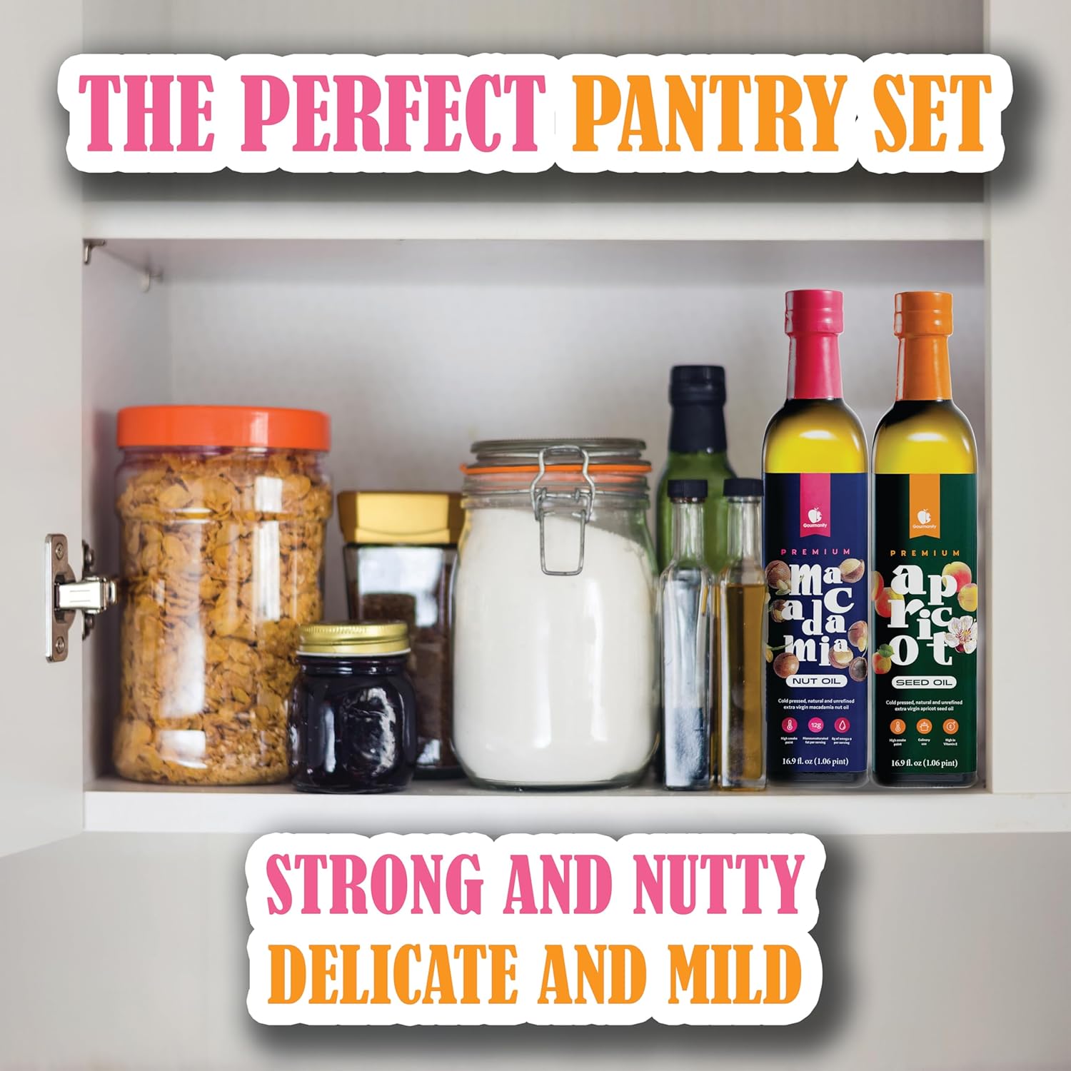 - PERFECT PANTRY SET: If you love Macadamia Nut oil, it's time you tried Apricot Seed Oil, our brand new favorite. Macadamia nut oil contains 85 mg omega-3 per serving and 8g of omega 9 per serving. Macadamia nuts are one of few foods containing omega 7s and our oil is a fantastic way to get them naturally; with 2g of omega 7 per serving, it's all the buttery flavor and heart healthy too! Apricot seed oil has 9g of monounsaturated fat per serving, and acts as a great boost to the cardiovascular system. It's also high in antioxidant Vitamin E and as a healthy alternative to traditional oils like sunflower and canola, can provide that simple flavor you need without compromising on health.