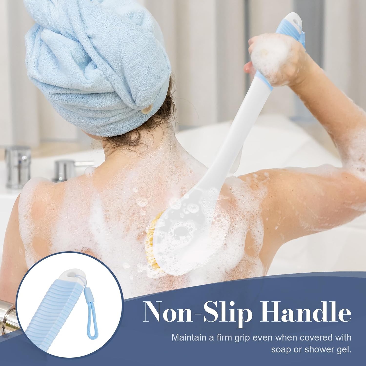 - ANTI-SLIP HANDLE: Our exfoliating back brush features a carefully crafted handle with its rubber texture. There are raised stripes engraved on the rubber surface, which enhances the friction between the hand and the handle. So it will offer a secure and reliable grip even when your hands are wet or soapy during bathing. Furthermore, the wide and flat handle with a touch of softness ensures a comfortable and worry-free brushing experience.