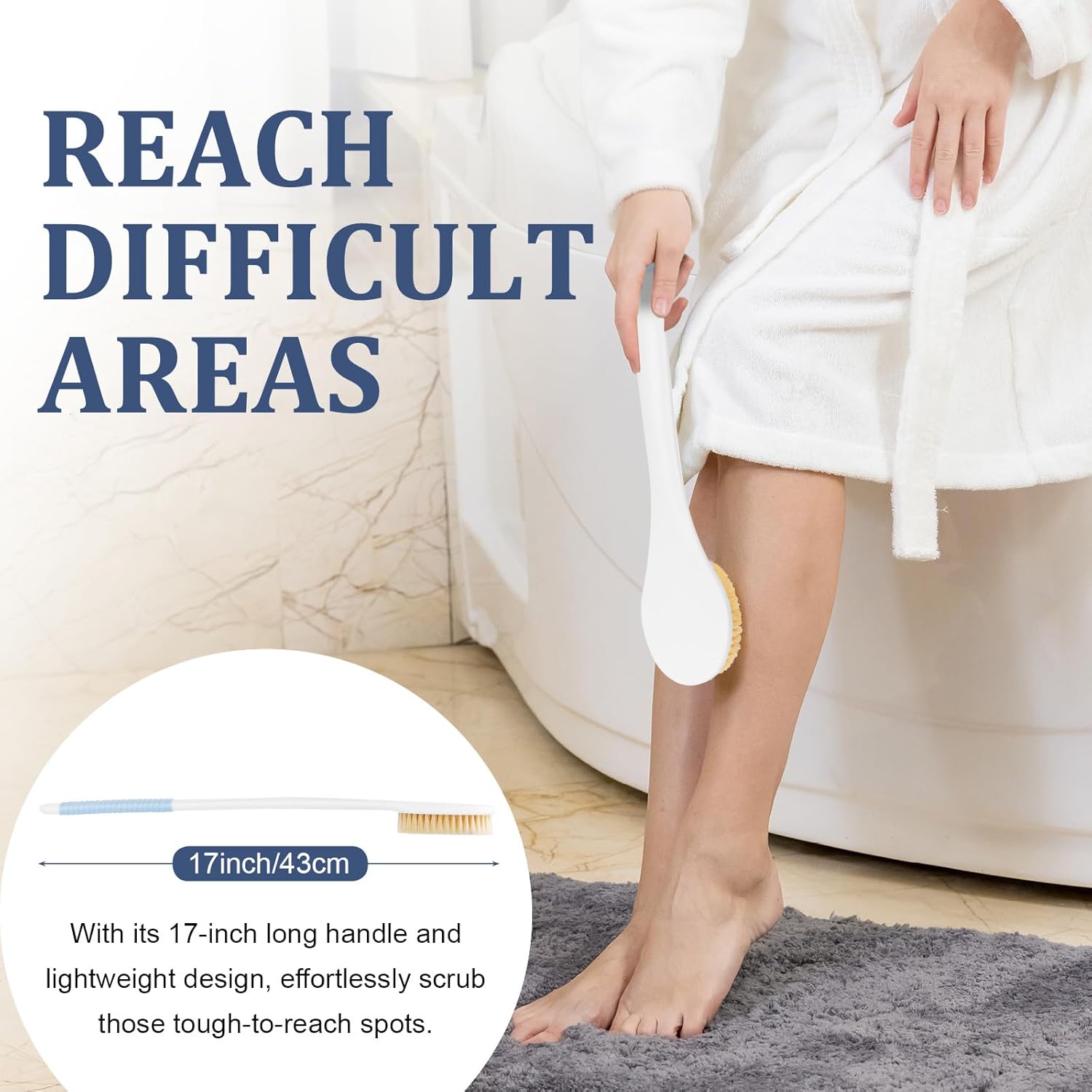 - EXTENED LENGTH OF REACH: To cater to its multi-functional role as a back brush for showering, we've upgraded the handle length to 17 inches, allowing you to effortlessly cover hard-to-reach areas like your back, lower legs, and feet without bending over. This feature proves particularly valuable for individuals with limited shoulder mobility or difficulty in bending their waist. Additionally, its slight curvature enhances ease of use with every stroke.