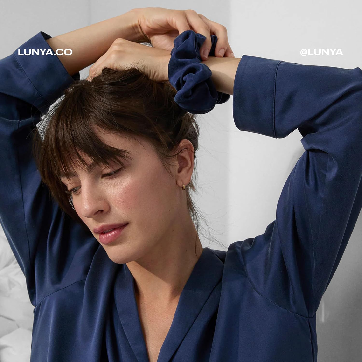 Lunya Washable Silk Scrunchies - Mulberry Silk Hair Ties - Deep Blue - One Size Fits Most