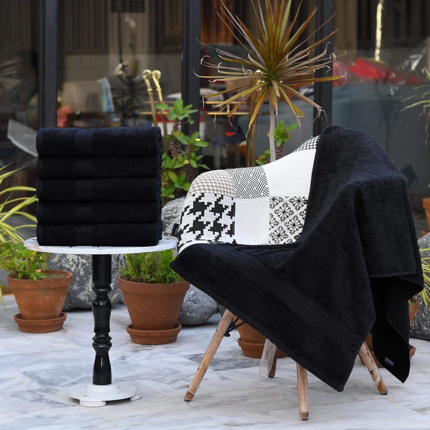 HERCULEAN Large Bath Towels 24 x 50 Pack of 6 | Quick Dry and Highly Absorbent | 100% Cotton Terry Towels for Bathroom - Perfect for Shower - Pool and Spa - Luxury Soft Towels - Black
