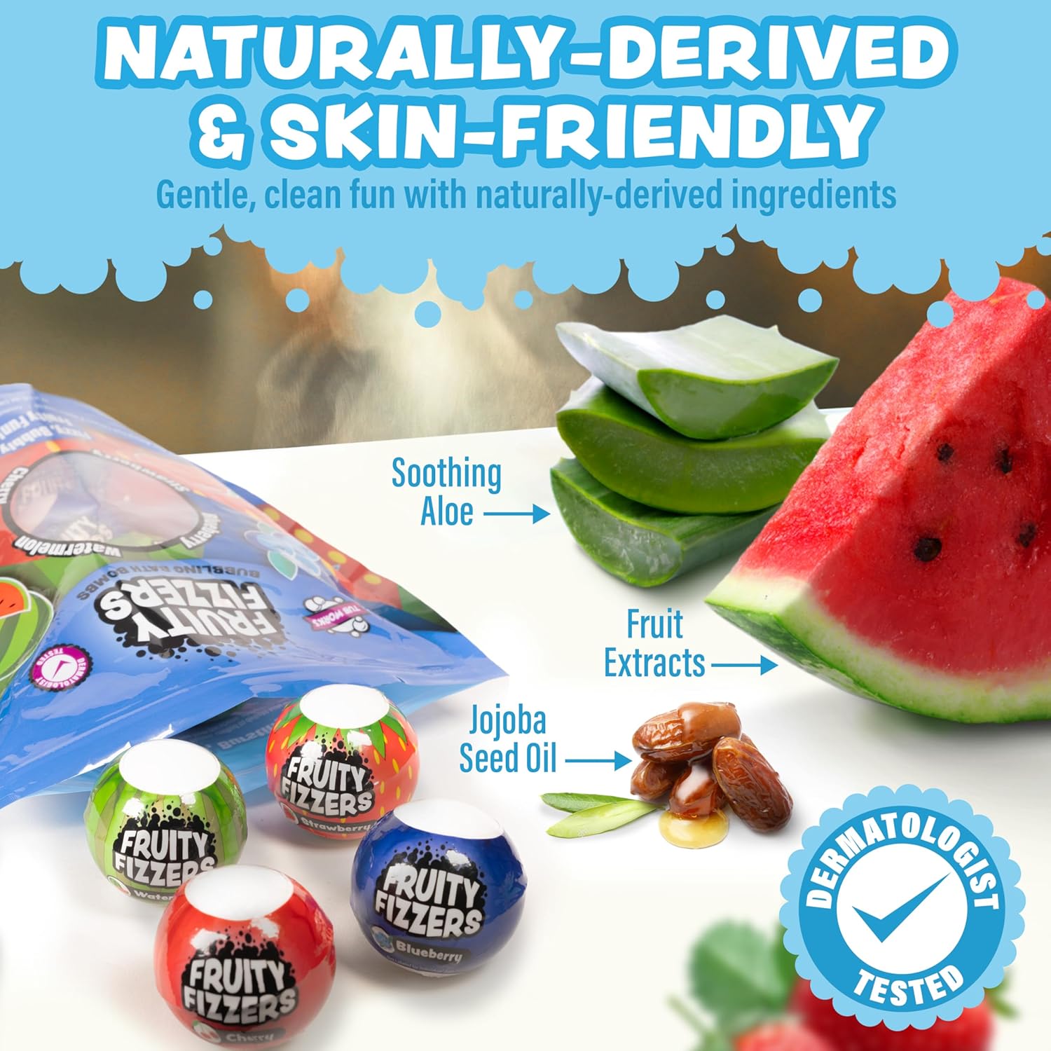- FUN IN THE TUB: Turn your kids bath into a fruity adventure with Fruity Fizzers! Our kids bath bombs fizz, bubble, and delight with fruity aromas—thoughtfully crafted for clean, sensory bath fun!