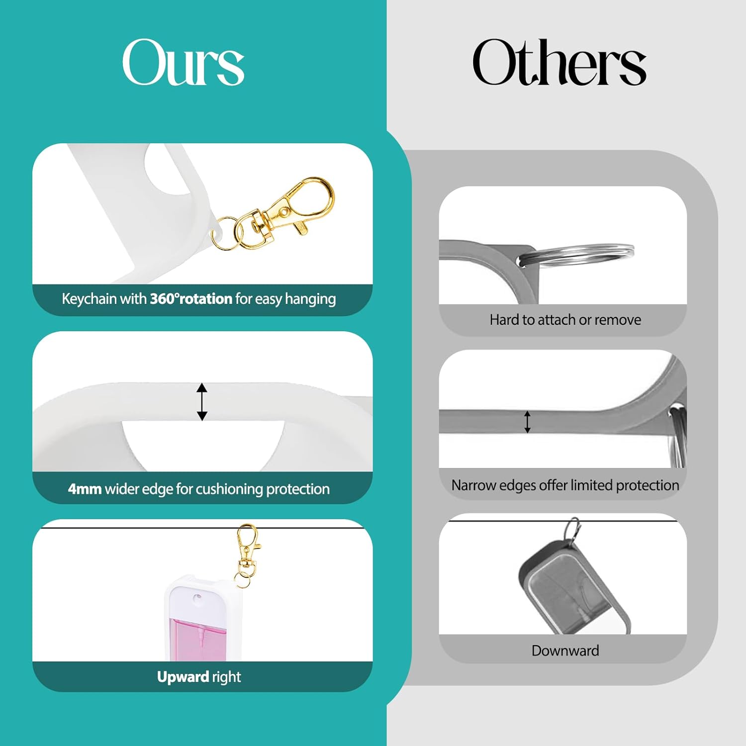 • 360° Rotating Keychain for Convenience: Equipped with a keychain featuring 360° rotation, the case can be easily attached to bags, keys, or belts for effortless portability, keeping your hand sanitizer always within reach.