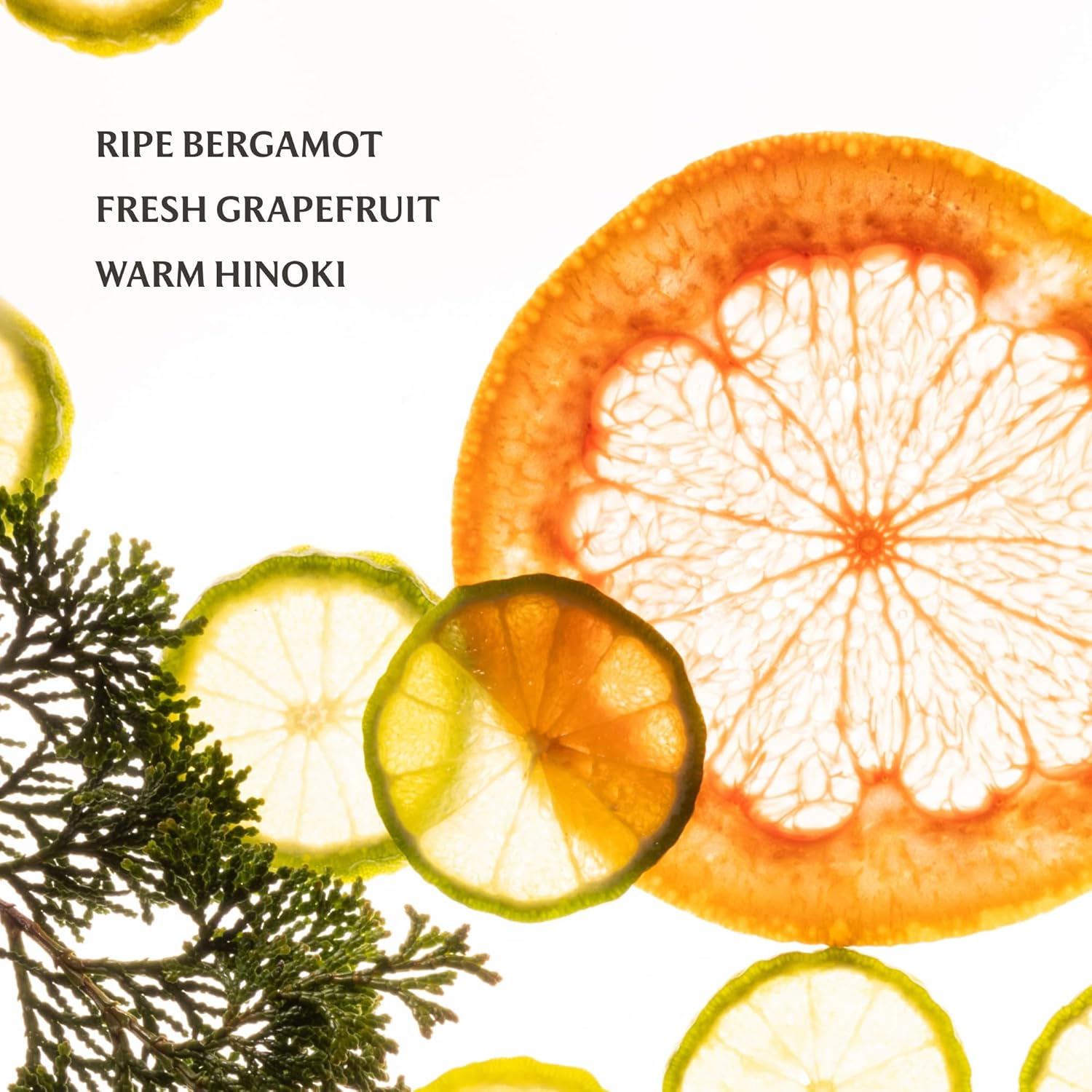 - MEET SPARKLING BERGAMOT: Elegant and serene with a touch of zest. Vibrant bergamot and grapefruit uplift, while hinoki wood grounds with its soothing warmth in this fresh fragrance.