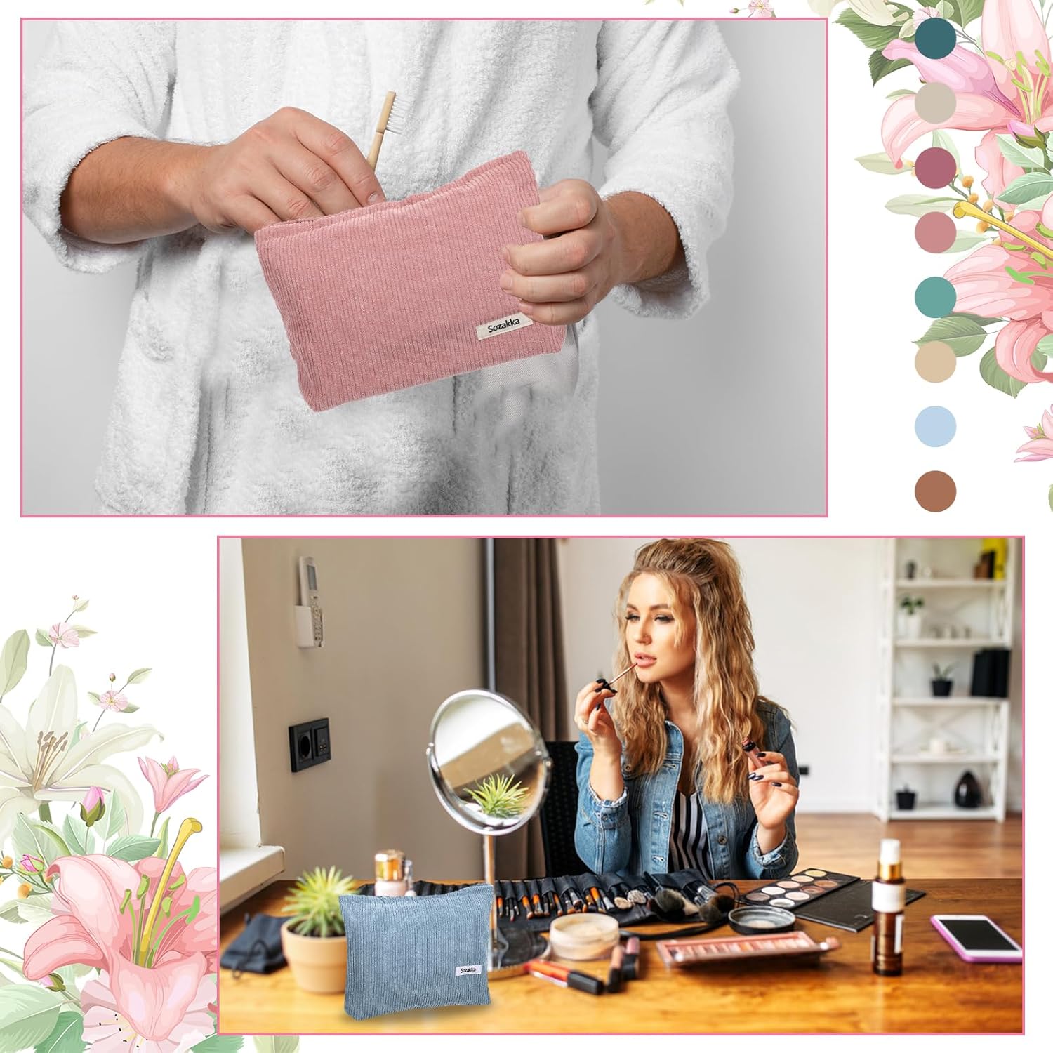 - Reliable and Soft: makeup pouch is mainly made of quality corduroy, soft and warm, sturdy and portable, reliable and lasting, not easily deformed or broken, will serve you comfortable using experience; The smooth metal zipper ensures that your items are not easily dropped