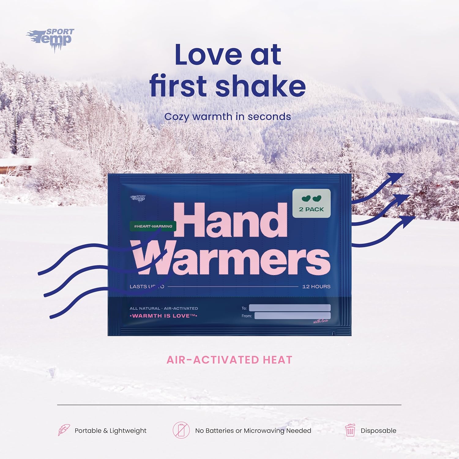 Heart Shape Hand Warmers (30 Pairs) - Up to 12 Hours of Heat, Super Long Lasting - Easy, All Natural - Air Activated, for Body & Hands - Odorless Hot Hand Warmer - Sport Temp
