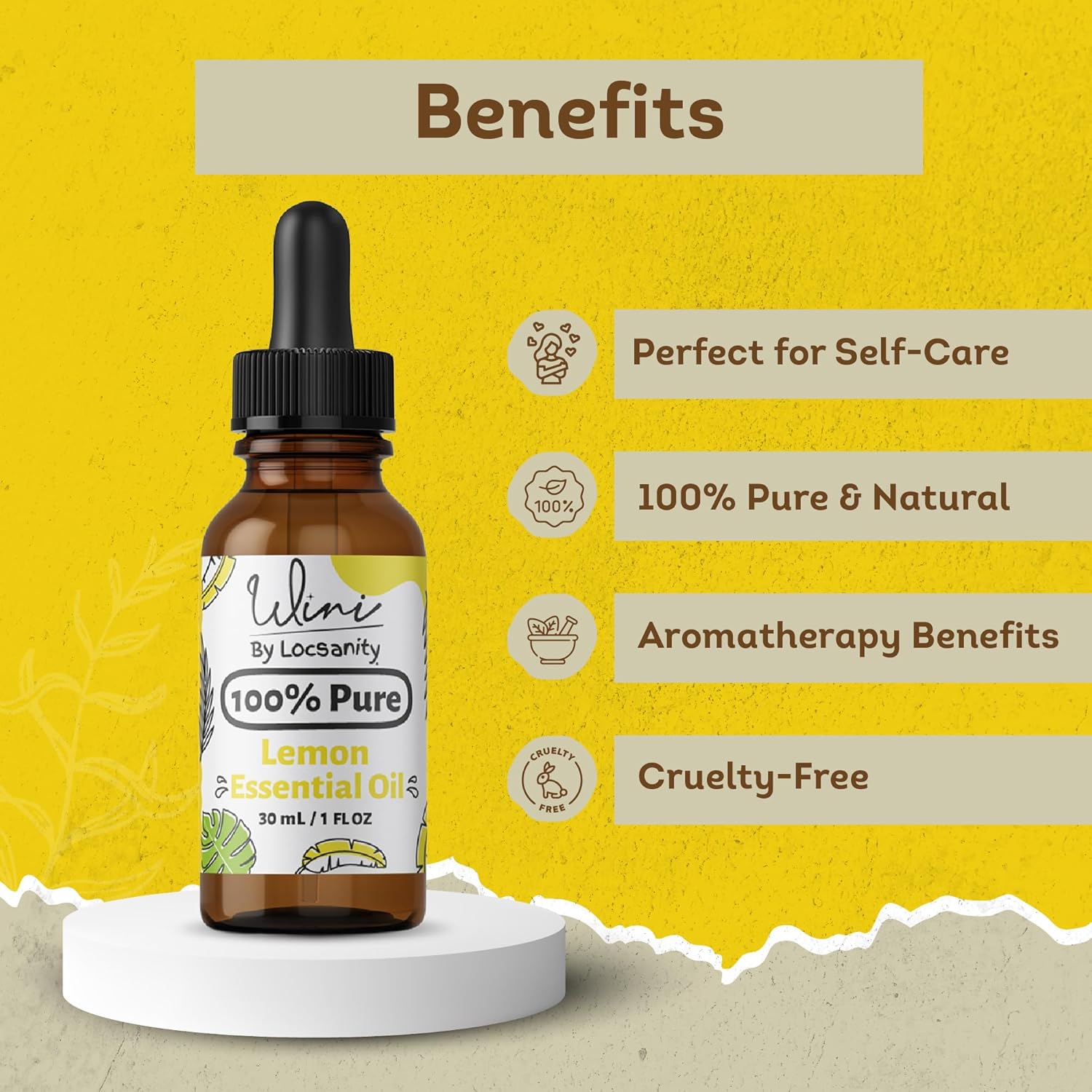 WINI by Locsanity Lemon Essential Oil with Glass Dropper | 100% Pure & Natural Lemon Diffuser Oil | Premium Grade Essential Oils for Skin Care, Aromatherapy, Hair & Scalp, Fresh Citrus Scent | 30ml