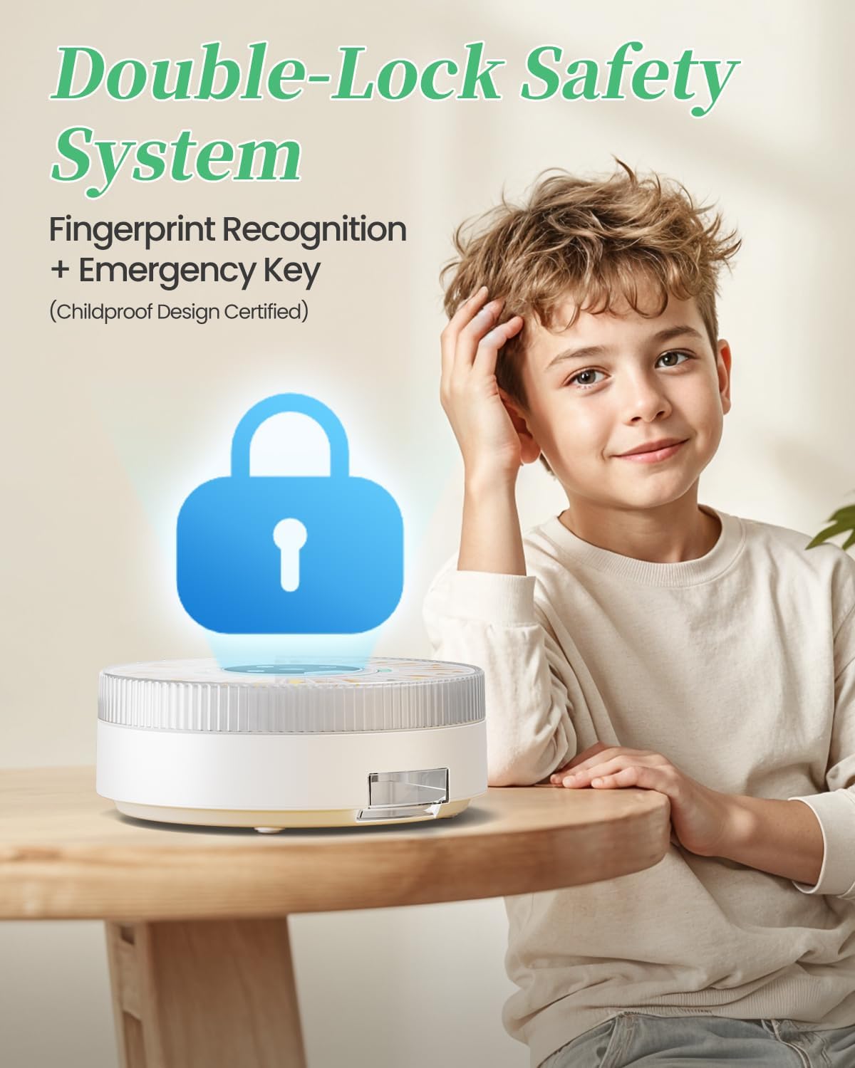- Special Feature : Automatic, Built-In Alarm, Child Resistant, Lockable, Rechargeable
