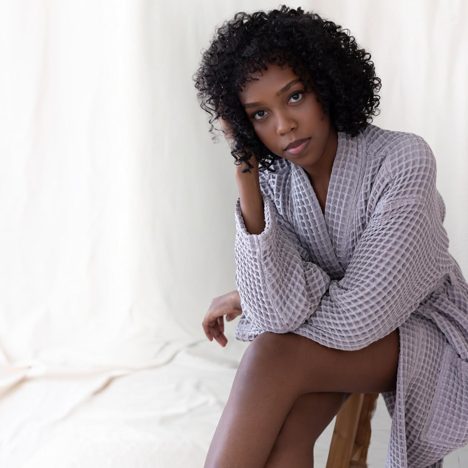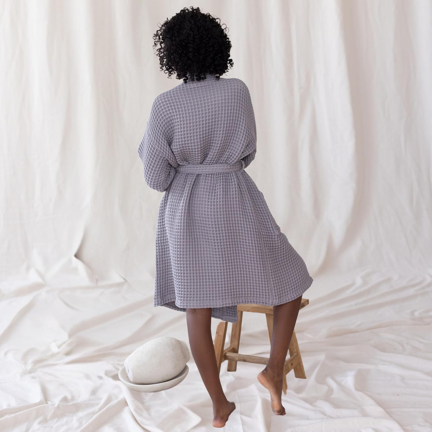 Womens Kimono Waffle Robe - Lightweight 100% Turkish Cotton Housecoat for All-Day Lounging - Bathrobe for Shower