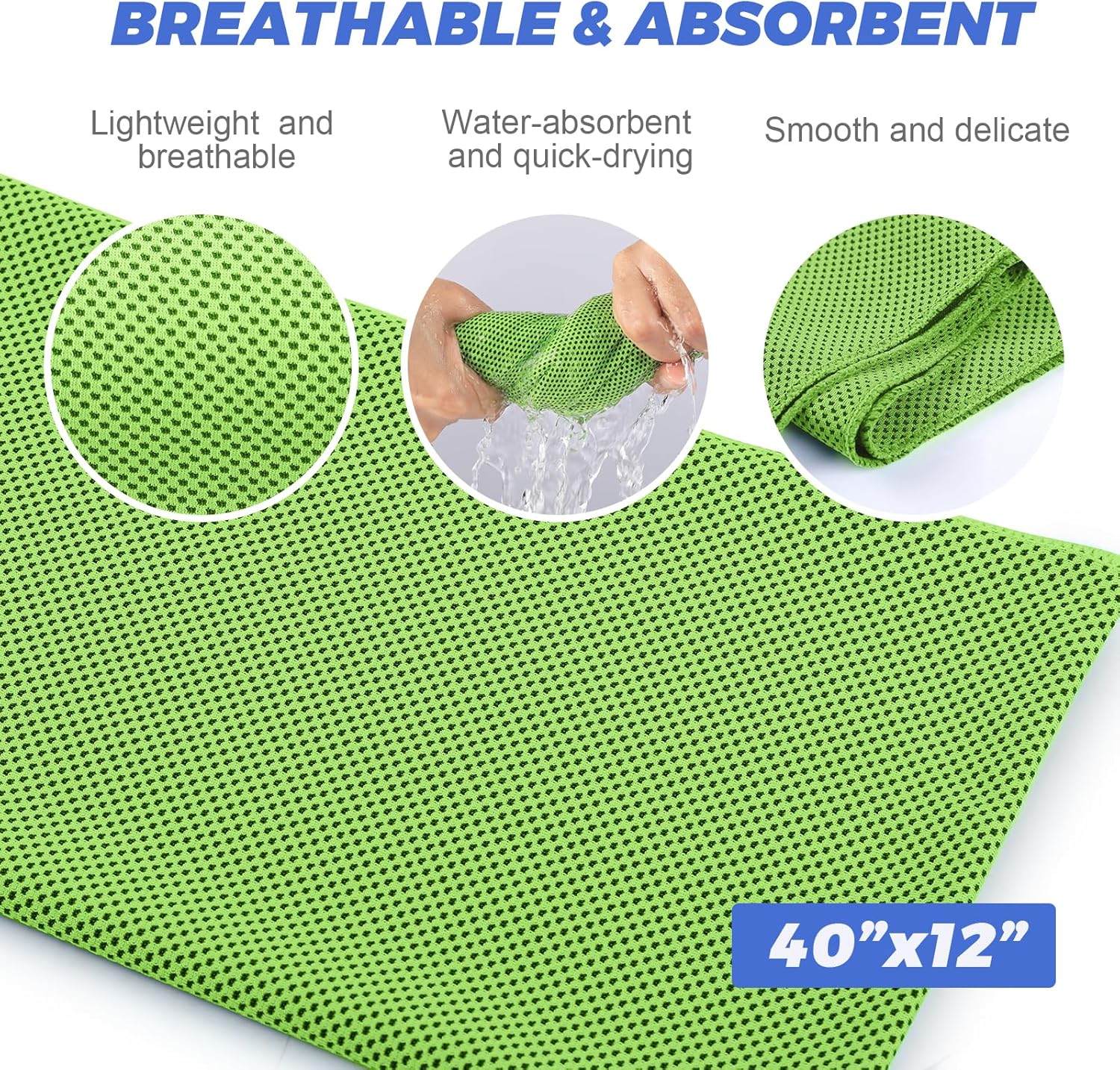 Cooling Towels for Neck and Face 10 Pack, 40x12’’ Soft Breathable Sweat Towels, Microfiber Sport Towel for Yoga, Gym, Workout, Running, Golf, Travel, Cooling Neck Wrap for Hot Weather