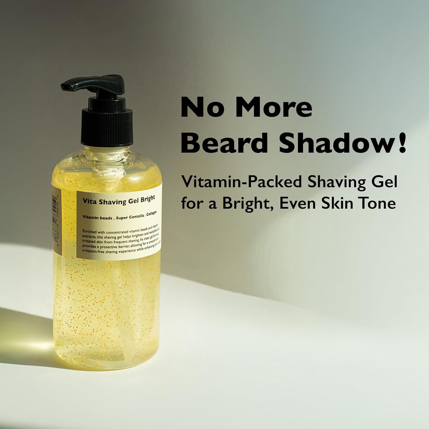 Vita Shaving Gel Bright – Vitamin C Transparent Shaving Gel for Men, Non-Foaming, Smooth Glide & Skin Brightening, 8.45 Fl Oz