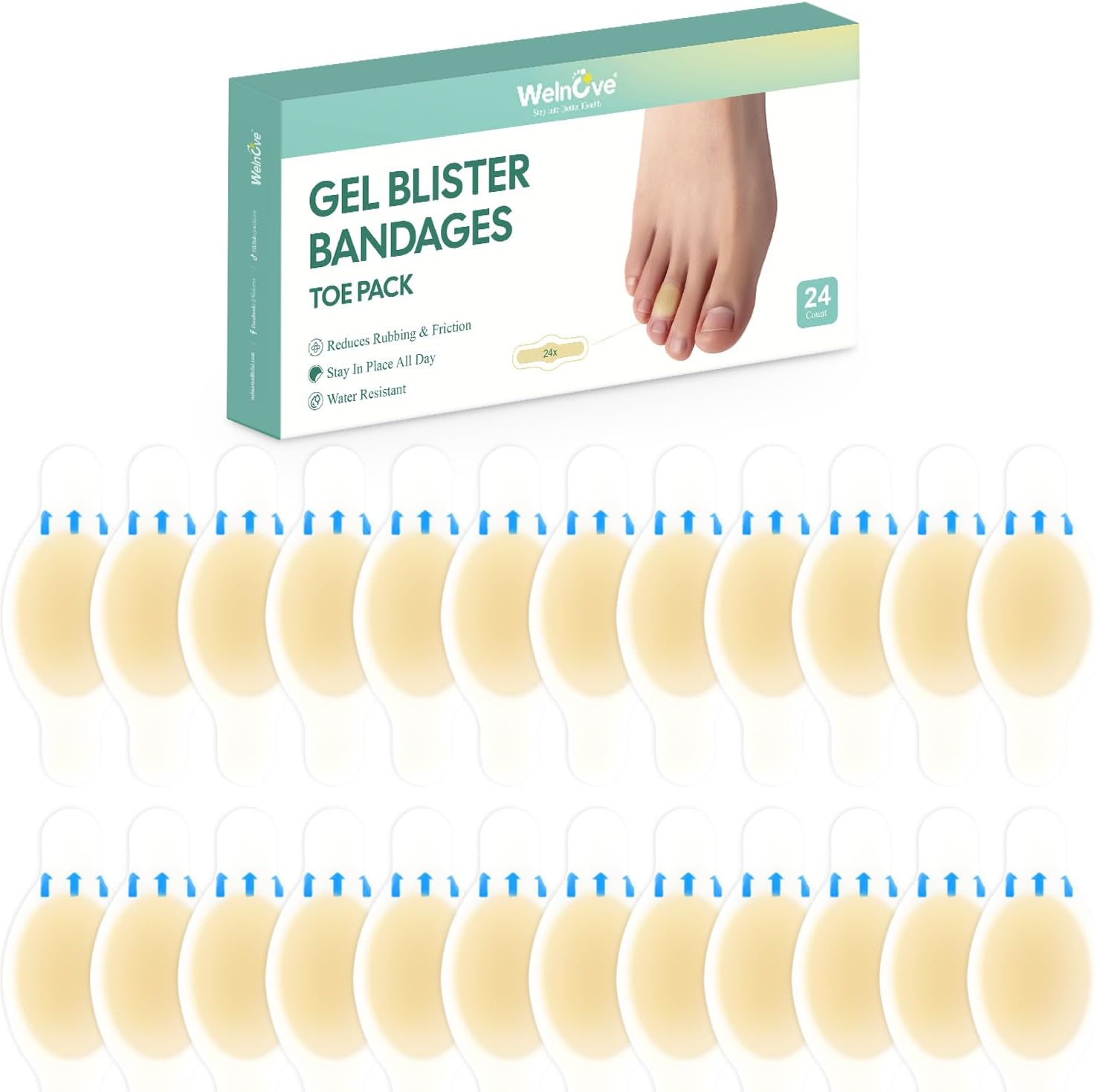 Welnove Gel Blister Bandage - 24 PCS Hydrocolloid Bandages for Prevention & Recovery, Blister Cushions for Heel, Toes & Foot, Blister Bandages for High Heels, Sandals, Wedding, Party (Toe Pack)
