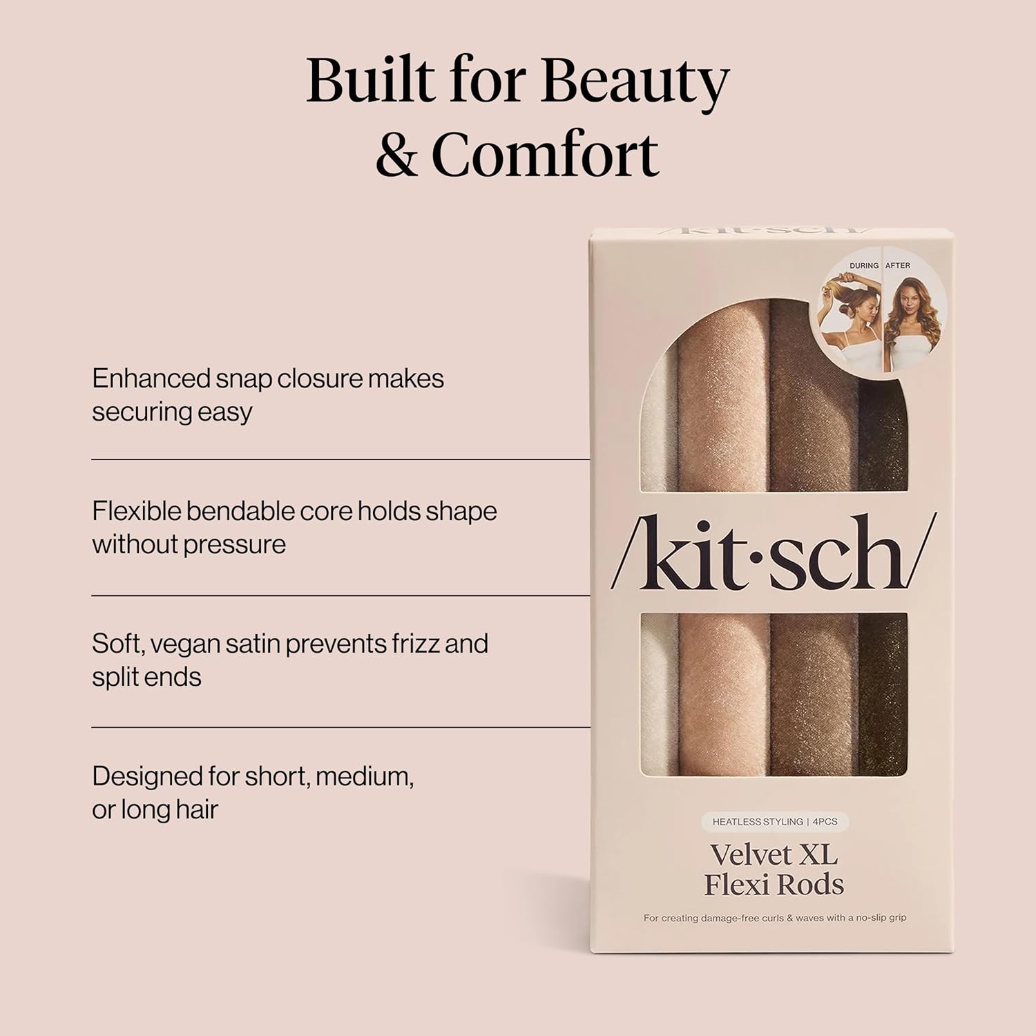 Kitsch XL Flexi Rods for Heatless Curls Overnight - Soft Velvet Hair Rollers for Women - Hair Curlers to Sleep In - Eucalyptus, 4pcs