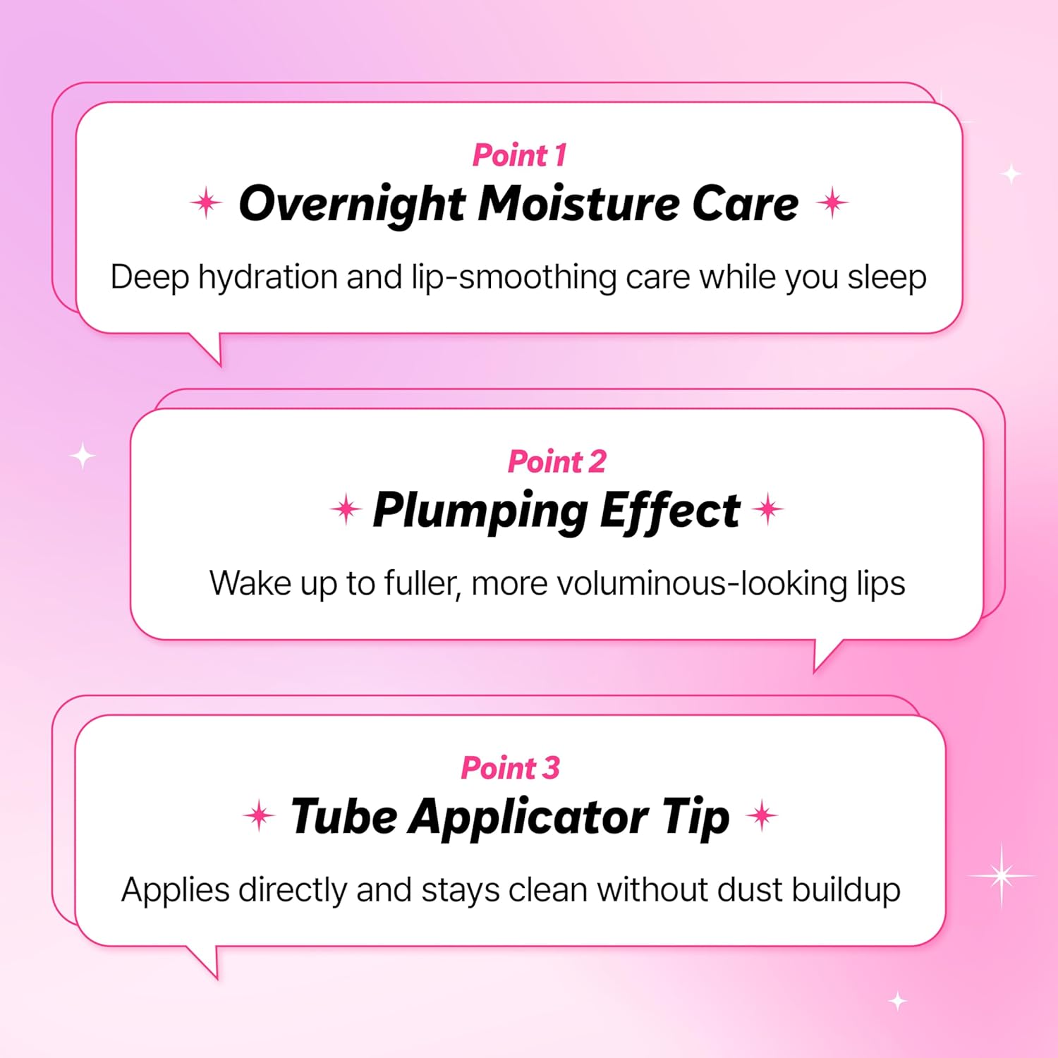 - Overnight Lip Sleeping Mask – Repair and revitalize dry, cracked lips overnight, leaving them soft, smooth, and supple by morning. Wake up to refreshed, nourished lips with this overnight treatment.