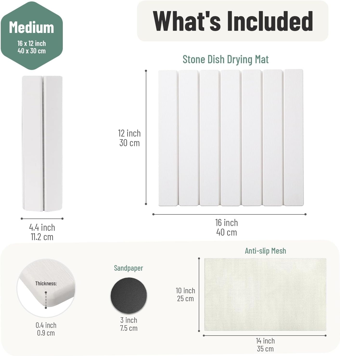 - Multi-Purpose Stone Mat – Use under a dish rack, for air-drying cups and bottles, as a soap tray, pet bowl mat, plant base, or bathroom drying mat. Available in Medium and Large sizes to fit every household.