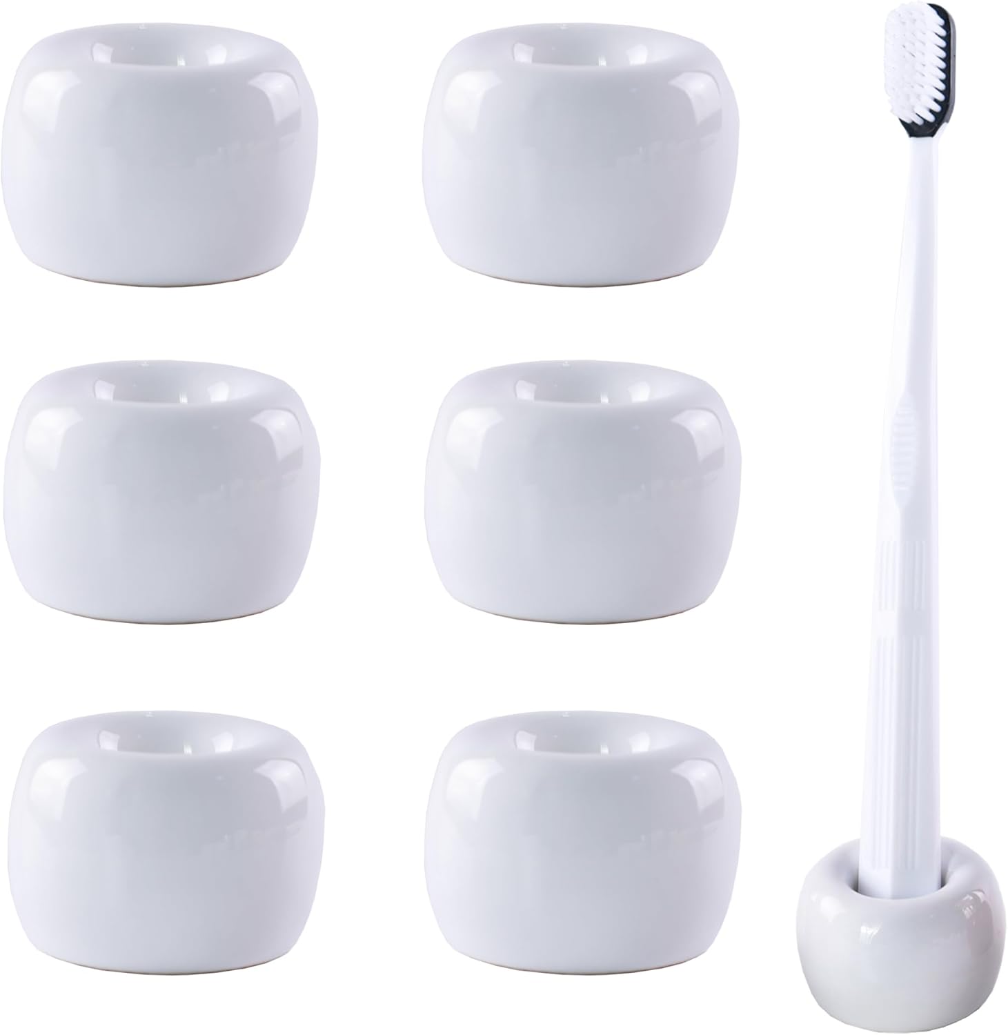 Set of 6 Sleek Mini Ceramics Toothbrush Holder, Small Ceramic Ring, Perfect Size for Bathroom Vanity Countertops