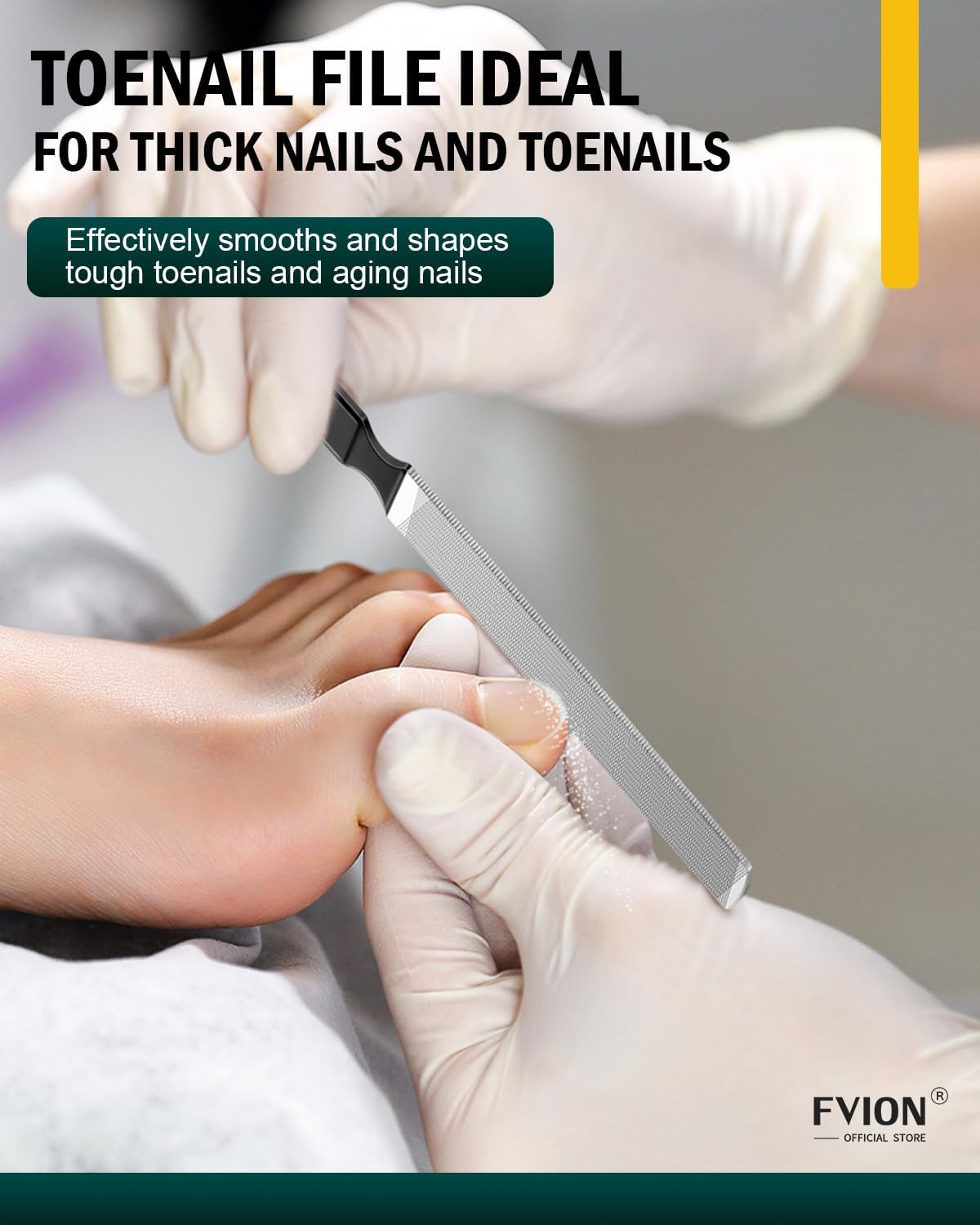 - Keep Nails Beautiful: The FVION professional nail file for men is useful for removing tri-breaks, and rough edges, it is used to repair broken or split nails and is very strong so will file thicker toenails with no problem, The comfortable grip allows for a secure hold, making it simple for seniors to polish their toenails without discomfort.