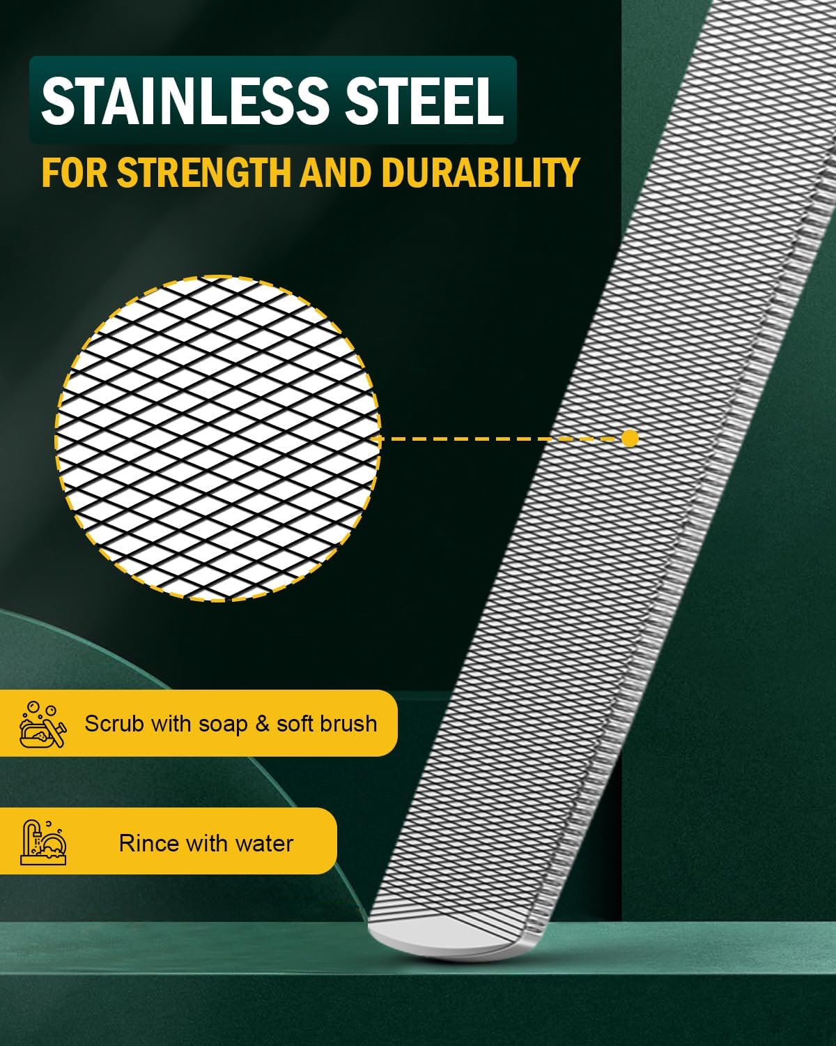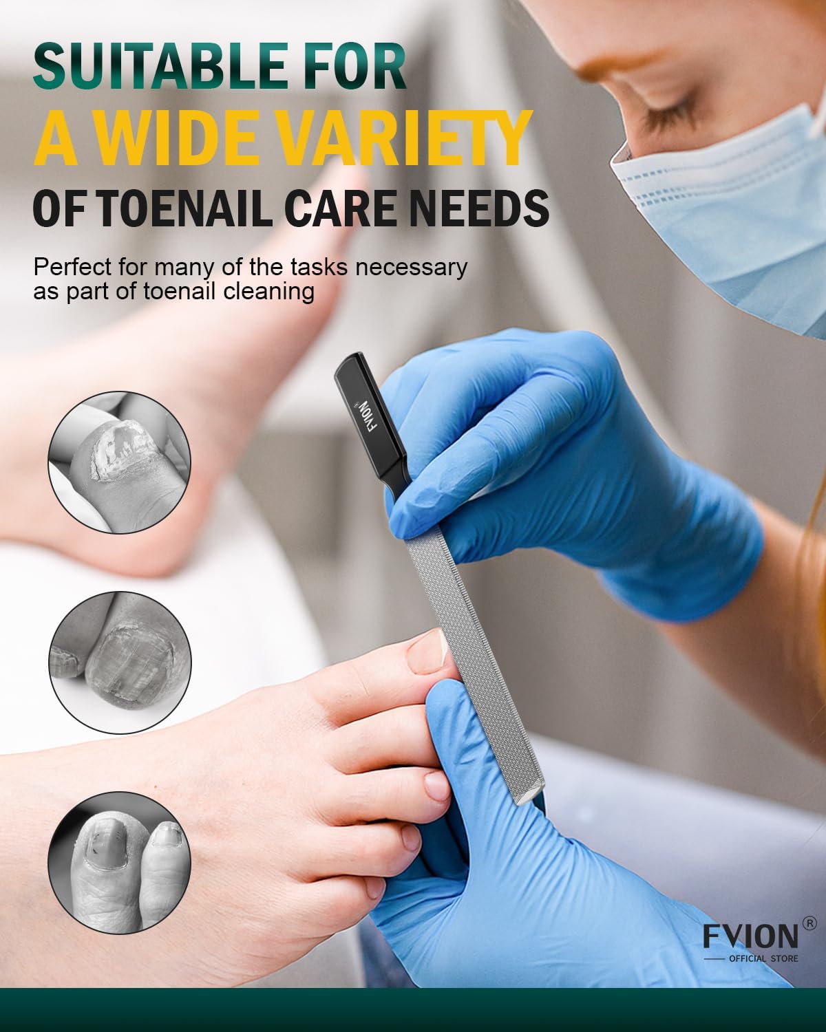 - Durable Stainless Steel - FVION foot nail file tools are used in anti-rust, solid, durable, water-resistant stainless steel. They can be washed directly with water to keep them clean, professional nail files are made with top-quality adhesive materials. Quick and easy to clean!