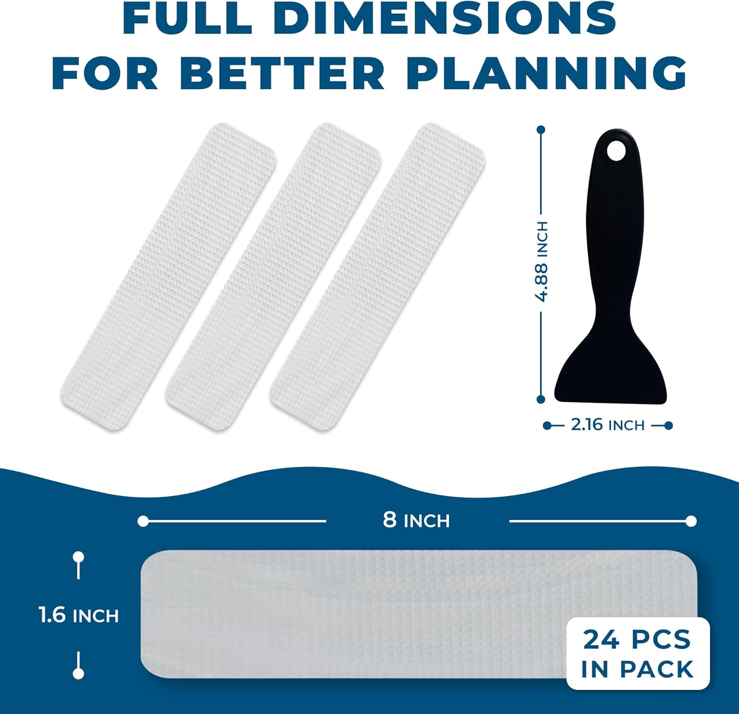 • Versatile & Comprehensive Coverage - With 24 clear strips (0.75”x8”) included in each package, you can cover most of your bathtub or shower surface, drastically reducing the risk of slips. Additionally, these versatile strips are perfect for use on stairs and boats, providing extra safety wherever needed.