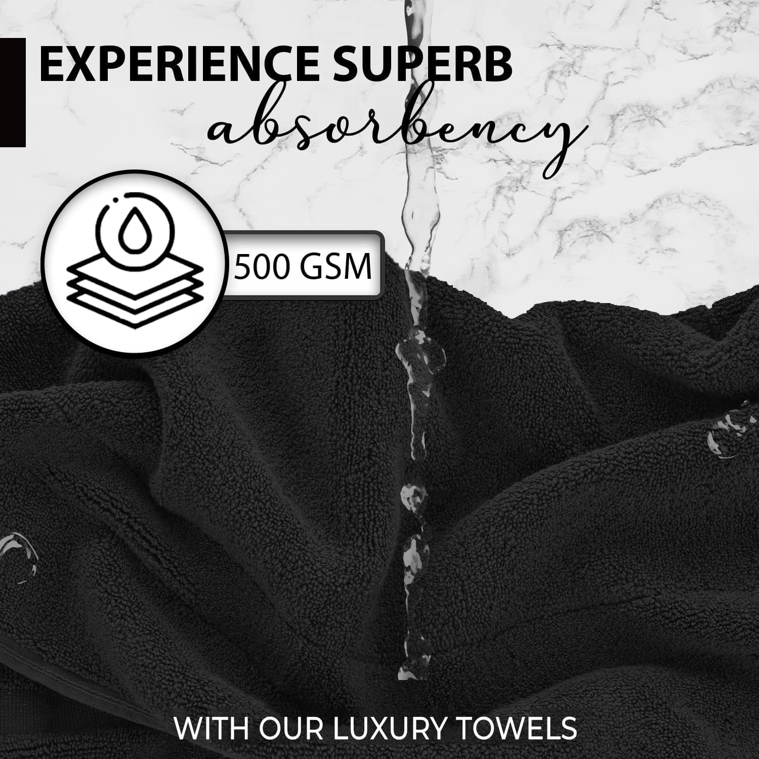 100% Cotton Bath Towels, 24x48 Pack of 6 Towels, Quick Dry, Highly Absorbent, Soft Feel Towel, Gym, Spa, Bathroom, Shower, Pool, Luxury Soft Towels (Black, 24x48-6 Pack)