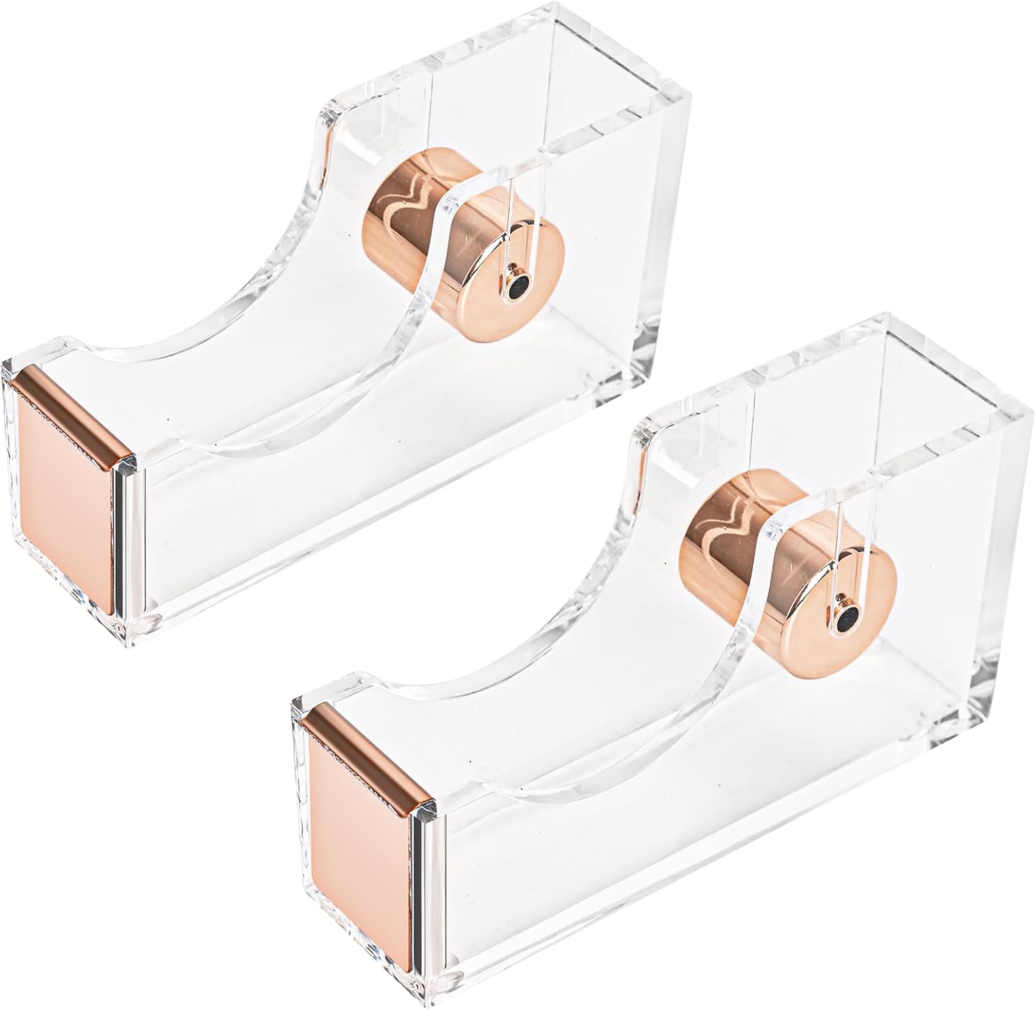 2-Piece Office Acrylic Tape Dispenser, Heavy Duty Adhensive Tape Cutter Holder with Non-Slip Bace, Single Hand Dispensing Clear Sticker Organizer Perfect for Desk, Office, School-Rose Gold