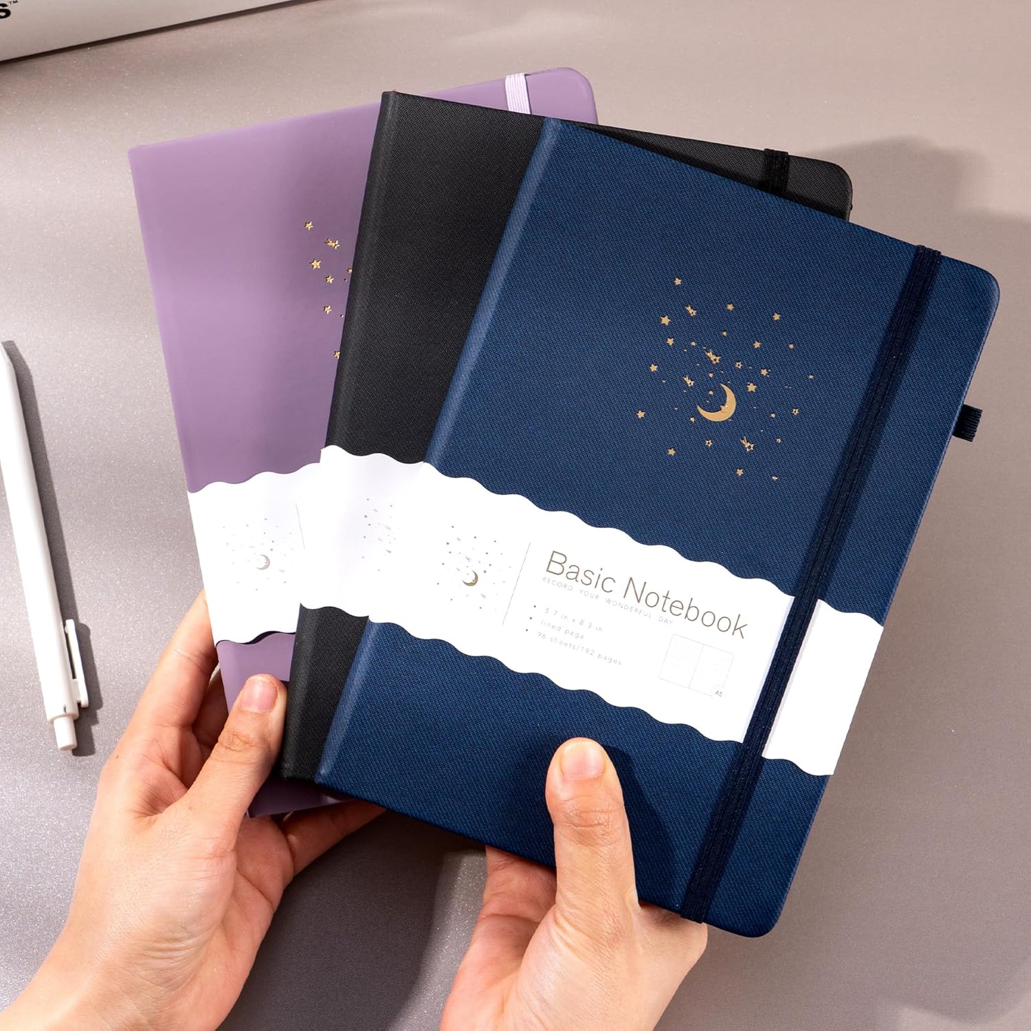 - EXQUISITE GOLD FOIL DESIGN: Each journal notebook's cover is adorned with sparkling moons, stars and shooting stars to inspire creativity. Whether you're journaling, writing or taking notes, the 3 pack journals are more than just journal. They're a statement of style and sophistication, elevating your life with a splash of color!