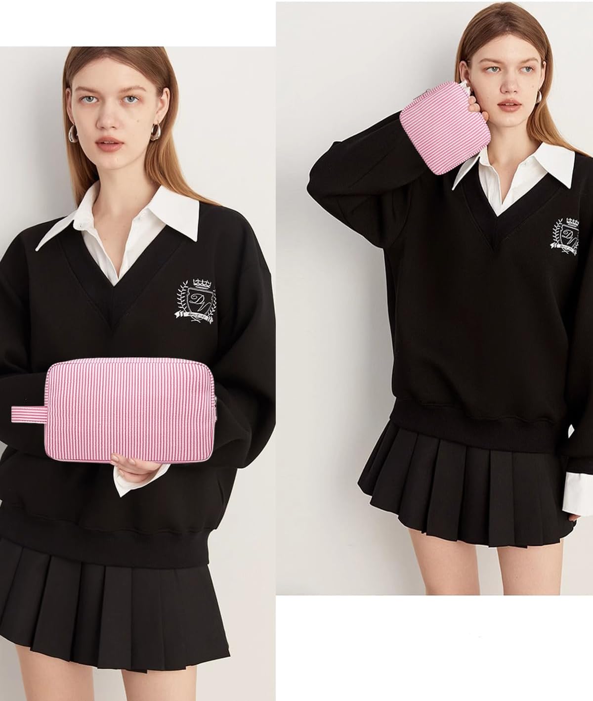 • Decent Size: You will get 2 makeup bags of different sizes to meet your different needs. And our cosmetic bag only need to open the zipper, all items at a glance, quickly select the required cosmetics. L: 9.45" X H 5.51” X W 2.76”, S: L 5.12" X H 5.12” X W 2.36”