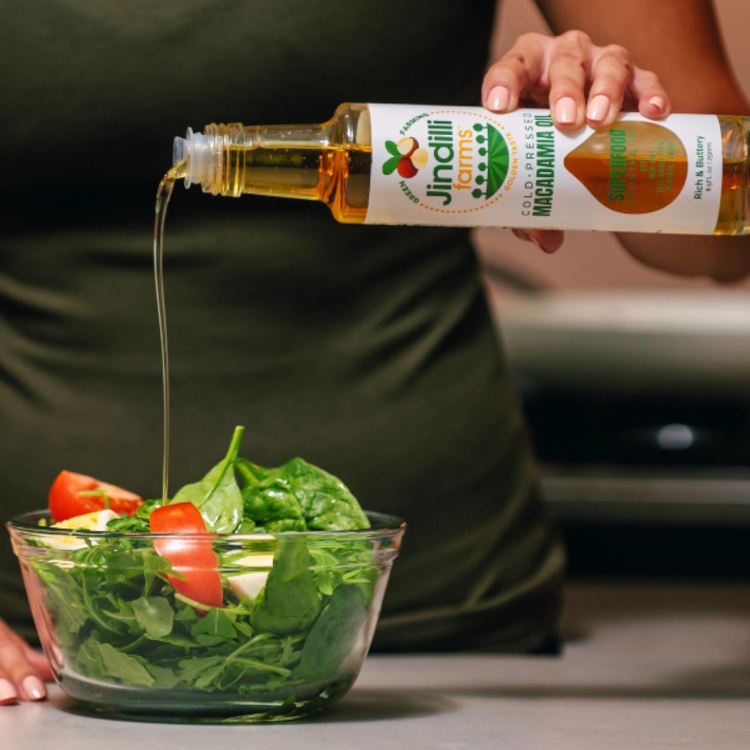 Jindilli Farms Macadamia Nut Cooking Oil- Australian Pure Cold Pressed, Unrefined, Natural Cooking Oil, High Smoke Point for Frying, Non GMO, Vegan, Keto Friendly and Gluten Free (64 fl oz)