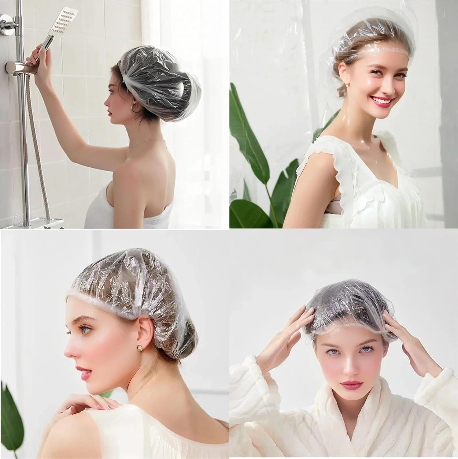 - High-Quality Material: Our disposable shower caps are made of premium, thick plastic that is durable and tear-resistant. The elastic band ensures a snug fit, making the caps reusable. The smooth, waterproof surface is also dust-proof, providing excellent protection for your hair.