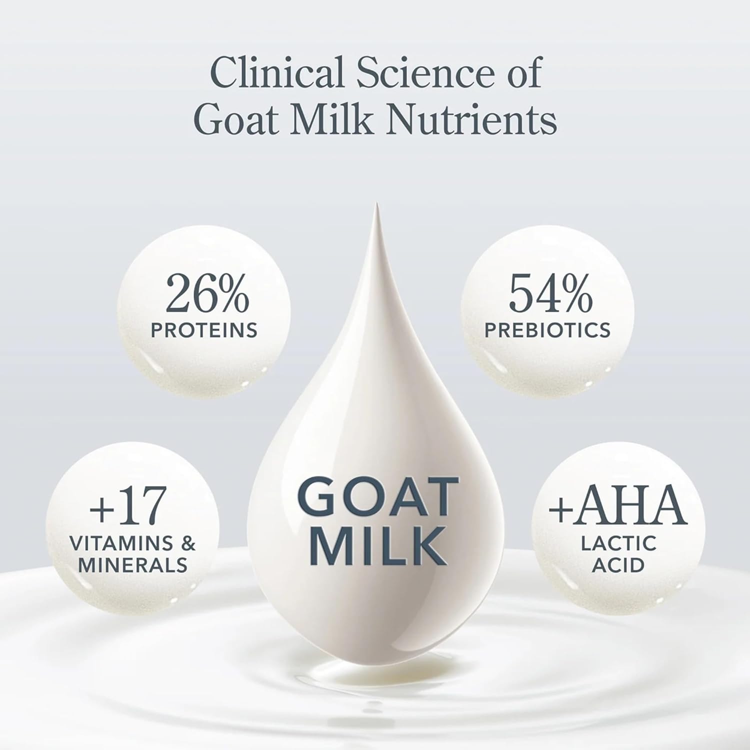 - KEY INGREDIENTS - Goat milk restores a healthy microbiome, glycerin boosts hydration, and shea butter helps relieve dryness.