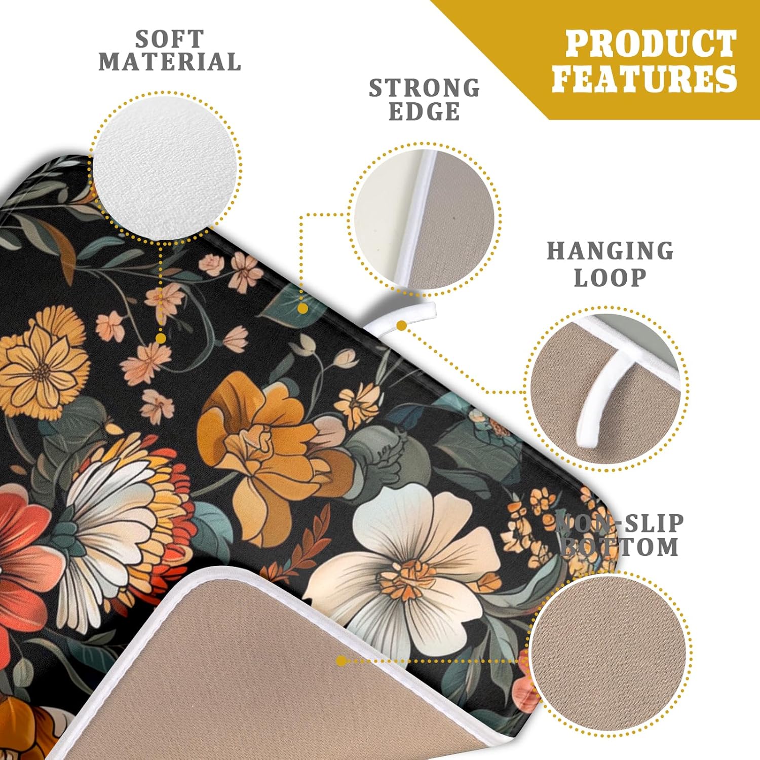 Vintage Floral Dish Drying Mat 16x18 inch Boho Flower Drainer Mats Fast Dry Absorbent Washable Dish Rack Pad Protector Kitchen Accessories
