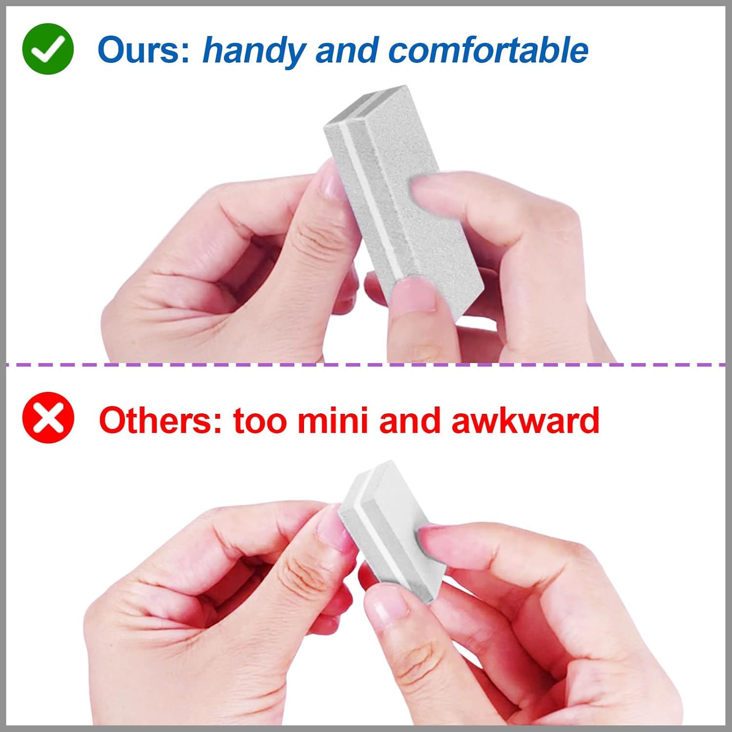 - PORTABLE AND CONVENIENT: With a compact size of 2.36” x 1.22”, our small nail buffers are easier to carry in your purse or bag if compared with other mini buffers, and so they are perfect for on-the-go use; whether you need a quick touch-up or a full nail buffing session, our nail buffer blocks are the perfect tool to do the job; and