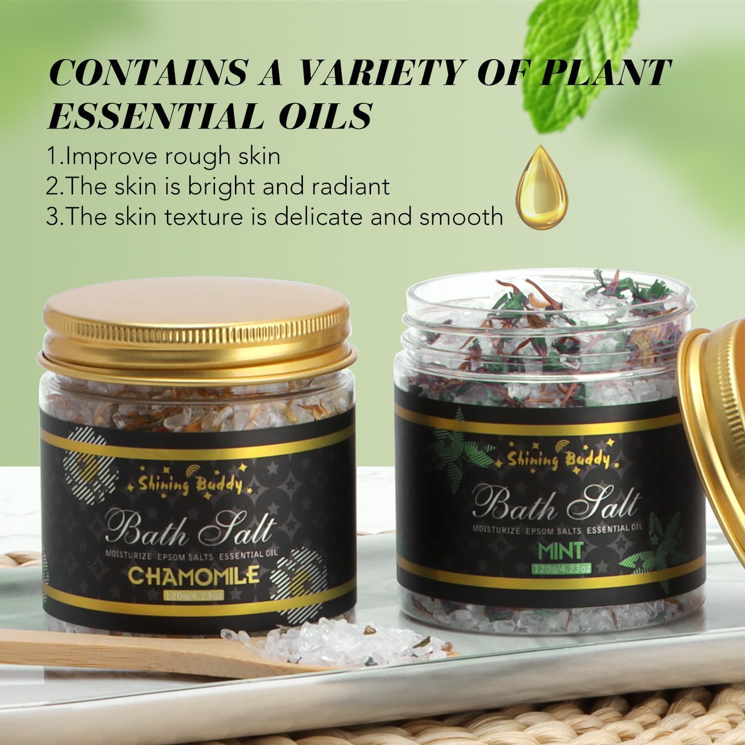 - THE ULTIMATE SELF-CARE & AROMATHERAPY GIFT SETďź Delight loved ones with our luxurious bath salts gift set, blending floral elegance (roses, jasmine) and therapeutic essences of lavender, eucalyptus, chamomile, and mint for a soothing fragrance. Infused with pure Epsom salt and natural oils, these lavender epsom salts for bath rituals offer spa-grade aromatherapy to melt stress, uplift moods, and nurture self-care. Perfect as bath salts with flowers for birthdays, Christmas, or Valentineâs Day, this rose-scented, skin-softening soak arrives in a lavish reusable jarâideal for gifting relaxation seekers who crave serenity at home or a floral escape after long days.