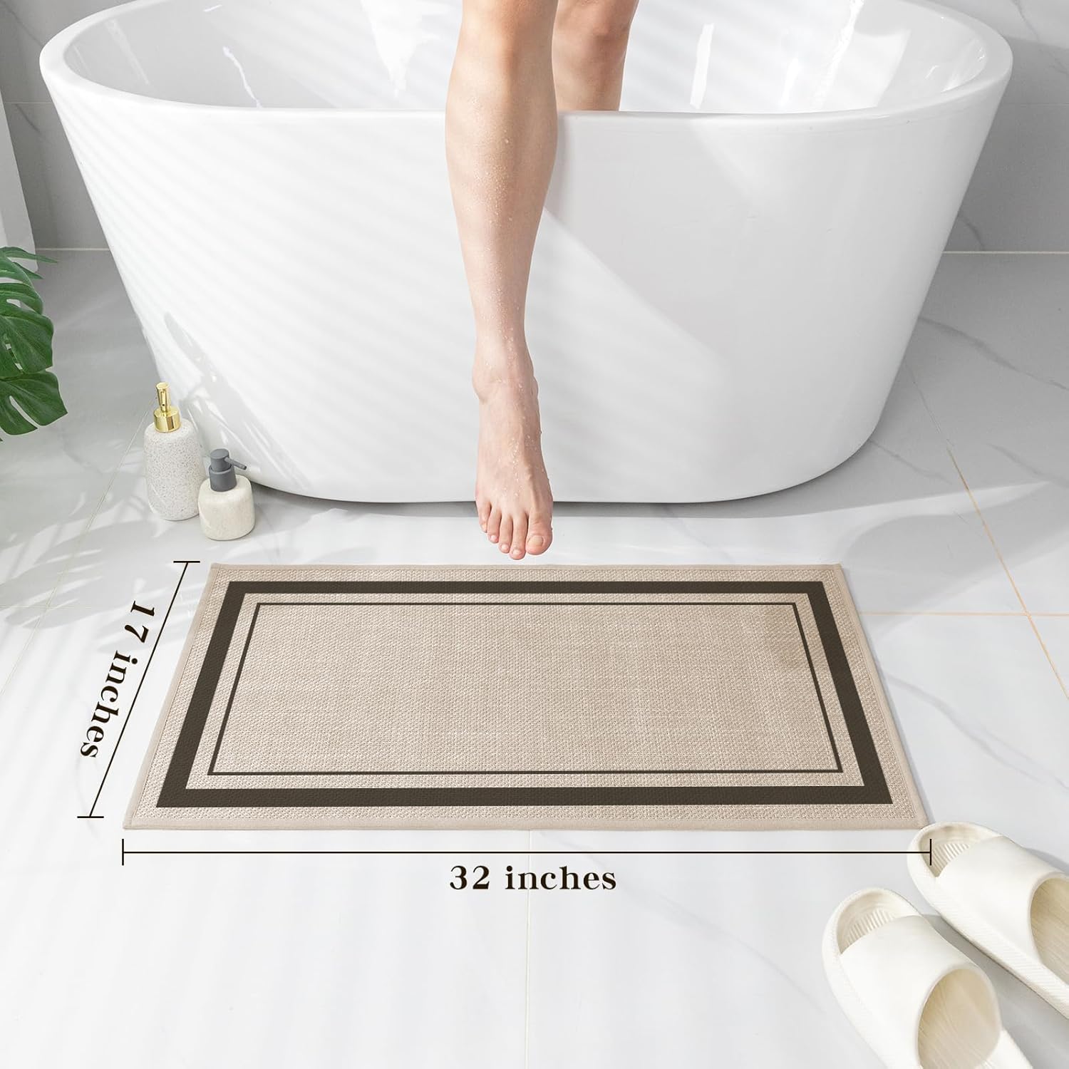 chakme Bathroom Rugs Mat 32x17, Ultra Thin Non Slip Bath Mat Quick Dry Absorbent Bath Mat for Bathroom Floor, (Light Beige, 32"x17")