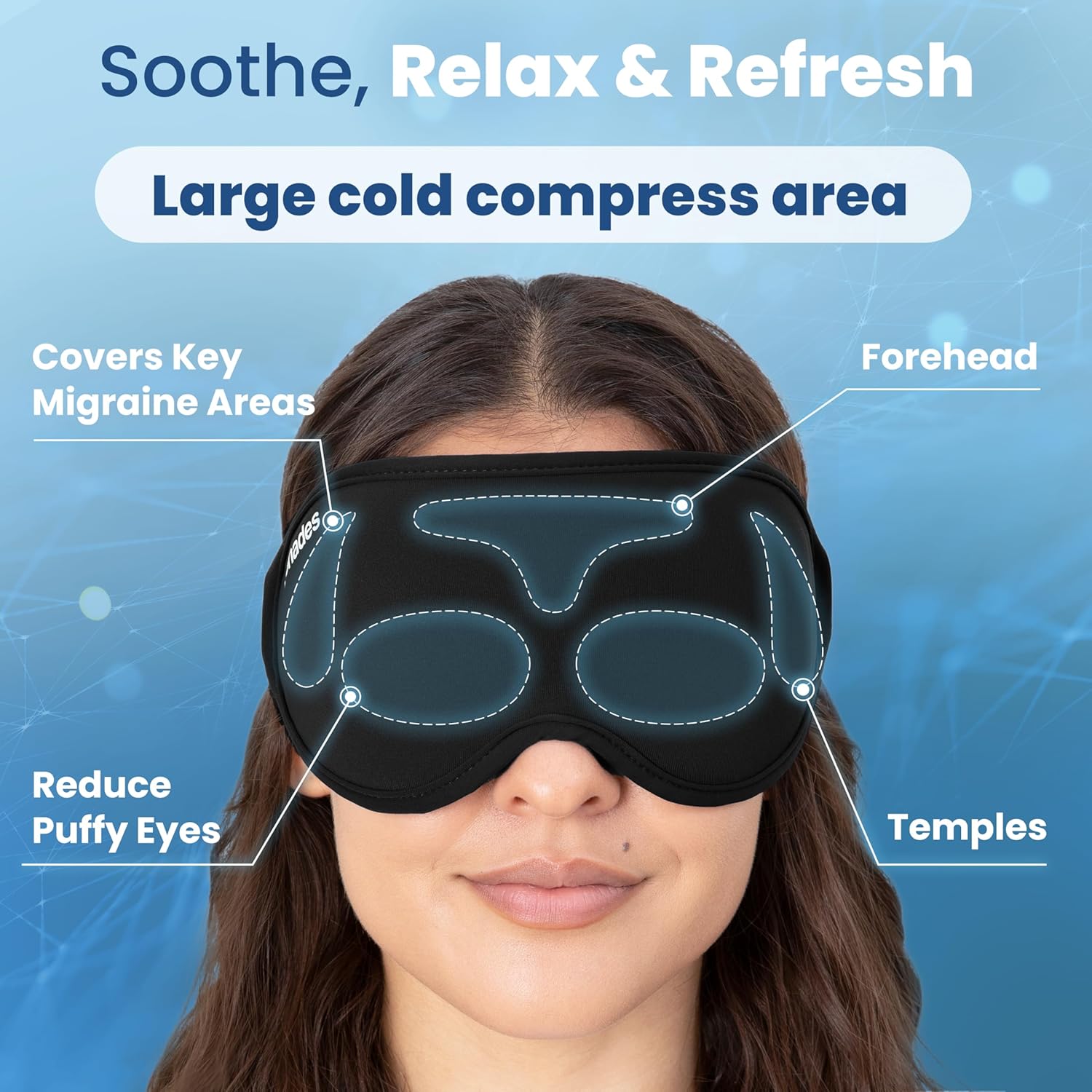 - SOOTHING RELIEF: The IceShades Cooling Gel Eye Mask provides soothing cold therapy to alleviate migraines, headaches, and sinus pressure while reducing stress and tension around the eyes and forehead. Enjoy natural relief by simply freezing the mask for a refreshing cold compress.