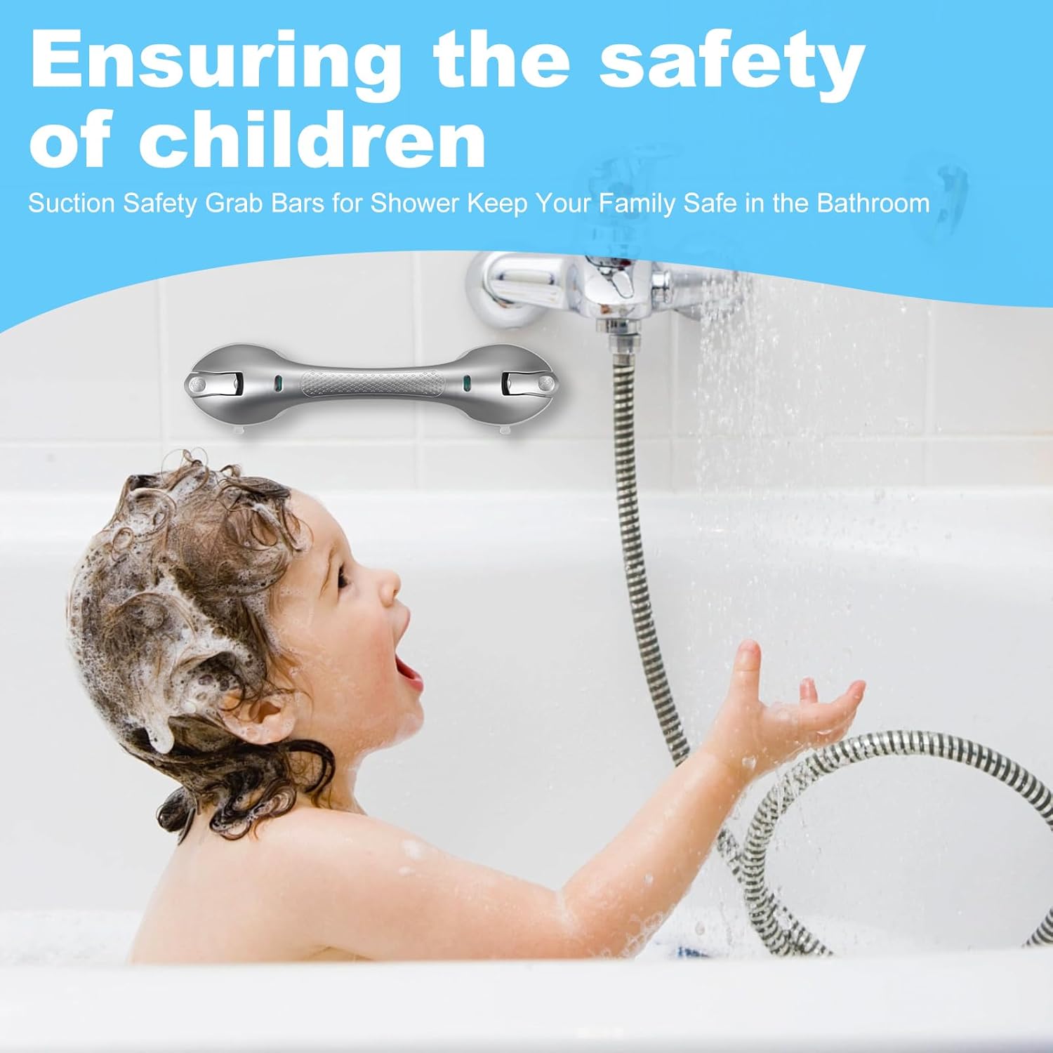 Suction Grab Bars for Bathtubs and Showers, Heavy Duty Shower Handle Removable Shower Handrails for Kids, Bathroom Safety Grip Waterproof(Silver)