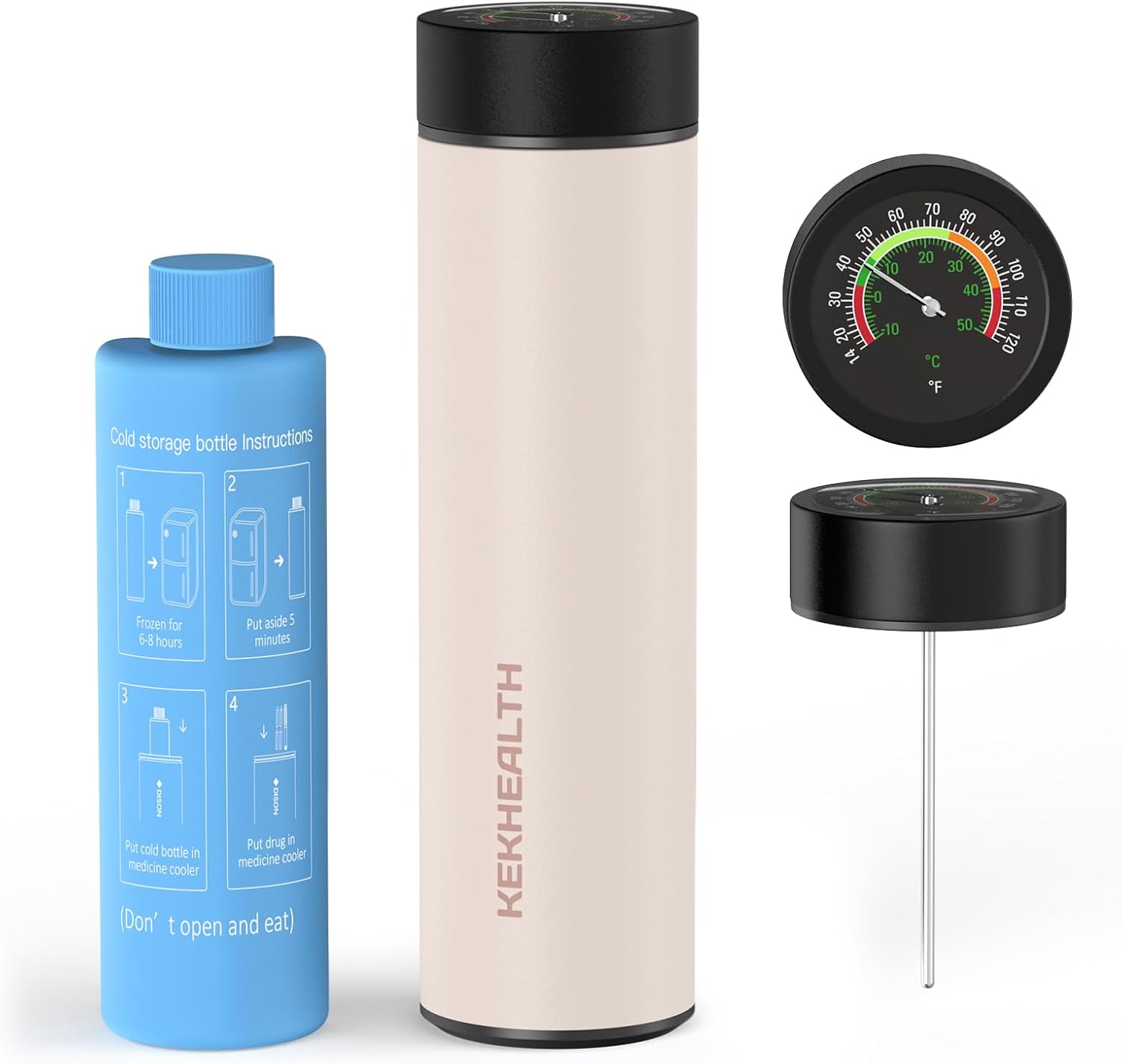 - 60-Hour Medical-Grade Protection: This insulin cooler uses 304 stainless steel and vacuum insulation to maintain critical 36-79°F temperatures for diabetes medications. The combination of a blue gel bottle (36-79°F/48H) and a white emergency bottle (36-79°F/12H) keeps medications at a safe temperature for up to 60 hours