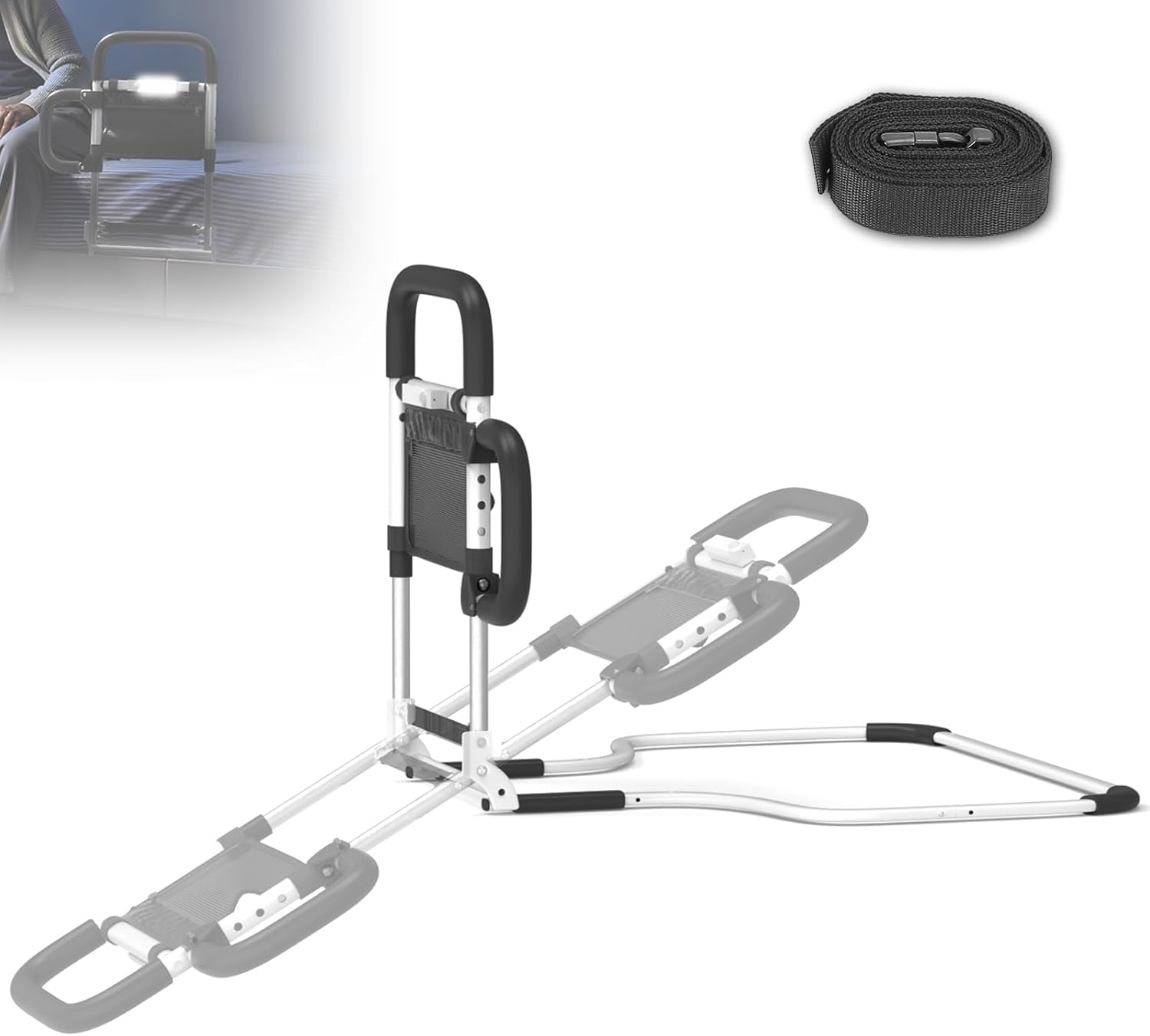 Foldable Bed Rails for Elderly Adults Safety with LED Night Light and Three Storage Pockets, Adjustable Bed Assist Rails for Seniors,Portable & Sturdy Grab Bar Bed Cane for King/Queen/Full/Twin(L)