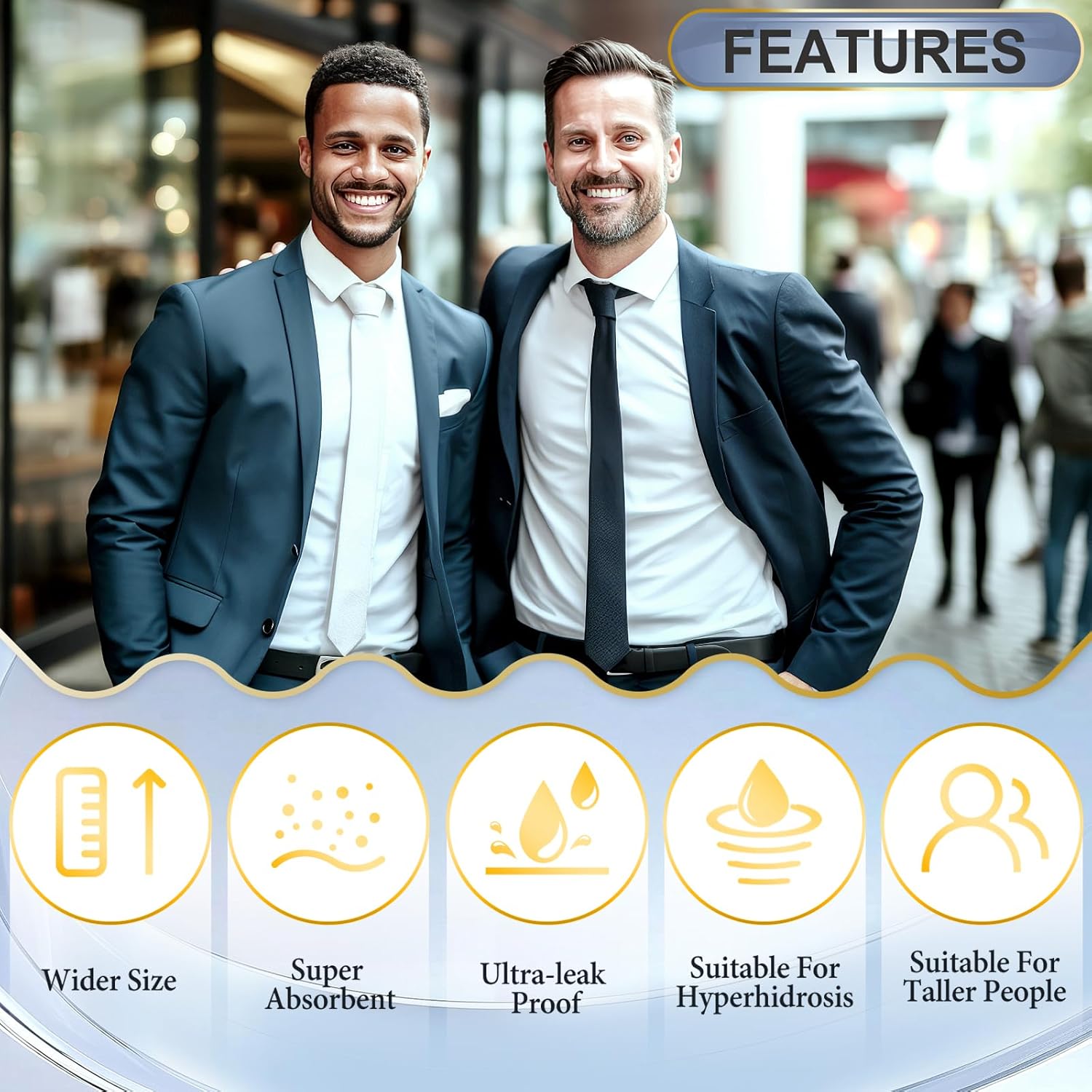 - Wider and Larger:Arme underarm sweat pads for men are specially designed for tall and hyperhidrosis people, bigger and more absorbent, better to take care of the wide underarms, will not leak sweat, ease all embarrassment. Each sweat pad for under arms measures 4.52“ x 3.93” x 5”