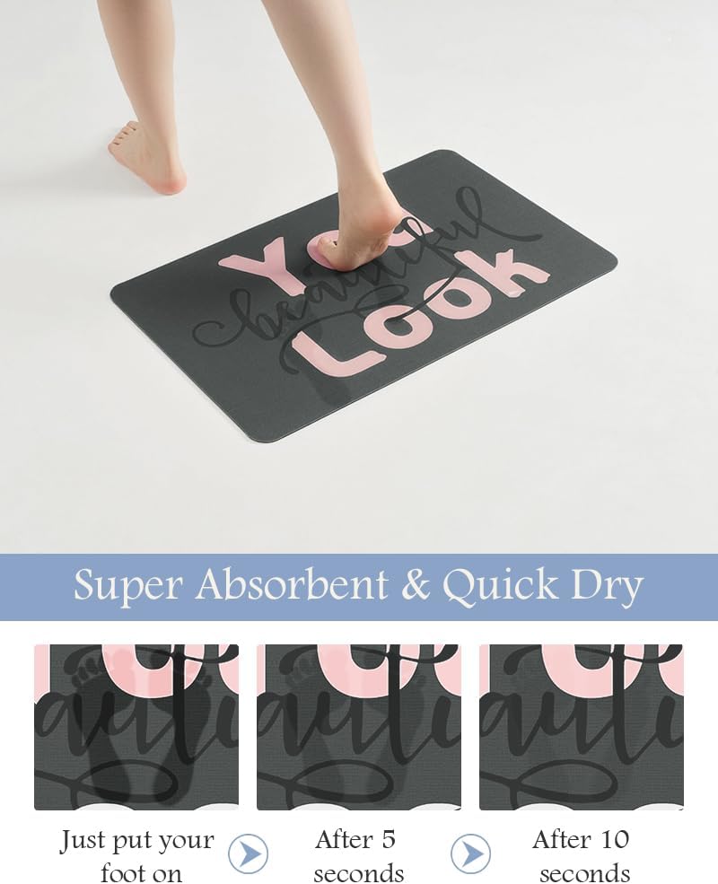 - Absorbent & Stain Resistant: Its specially engineered nano-porous smooth surface instantly absorbs dripping water, leaving no conspicuous watermarks or stains. Whether stepping out of the shower or washing your hands, you can trust this super absorbent bath mat to keep your space clean and safe.