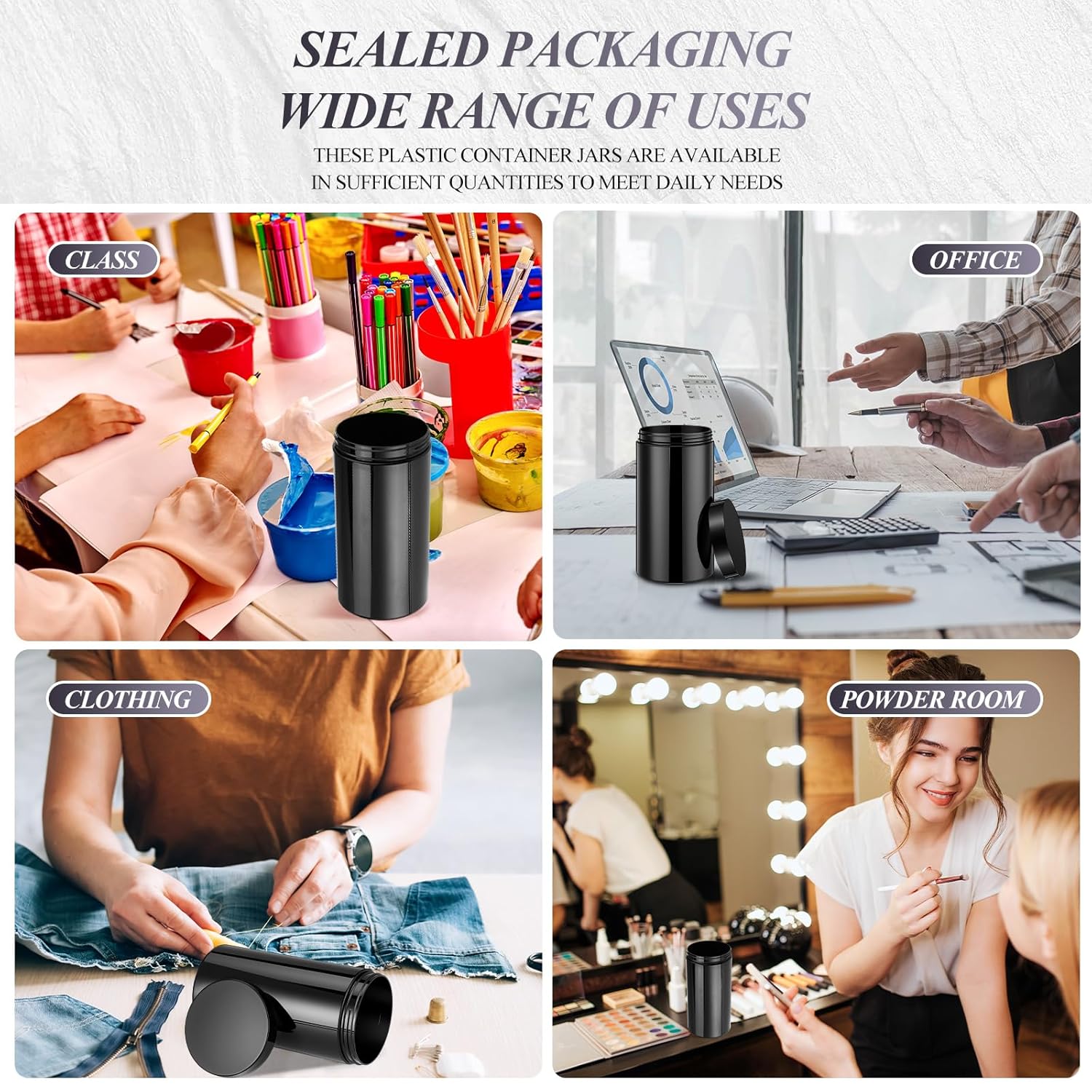 - What You Receive: there are 4 pieces plastic jars with black screw-on lids; They are durable and refillable, measuring about 32 oz in capacity