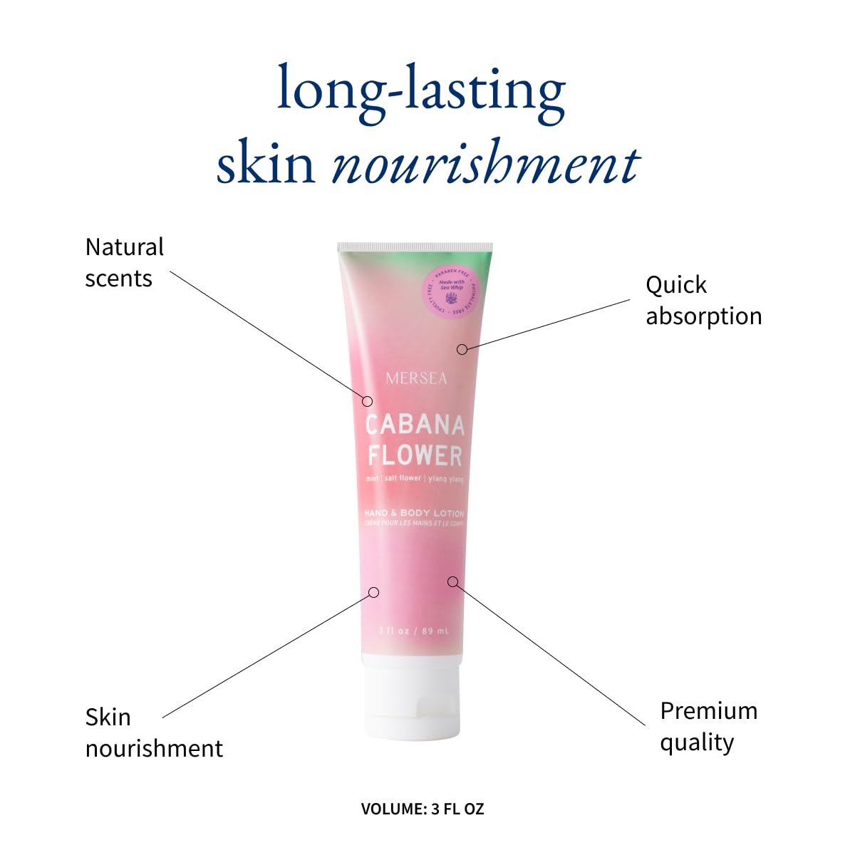 - FRESH FLORAL SCENT - MERSEA Cabana Flower Non Toxic Hand Lotion produces a light, lovely fragrance with notes of tropical ylang-ylang, cool mint, and alluring salt flower