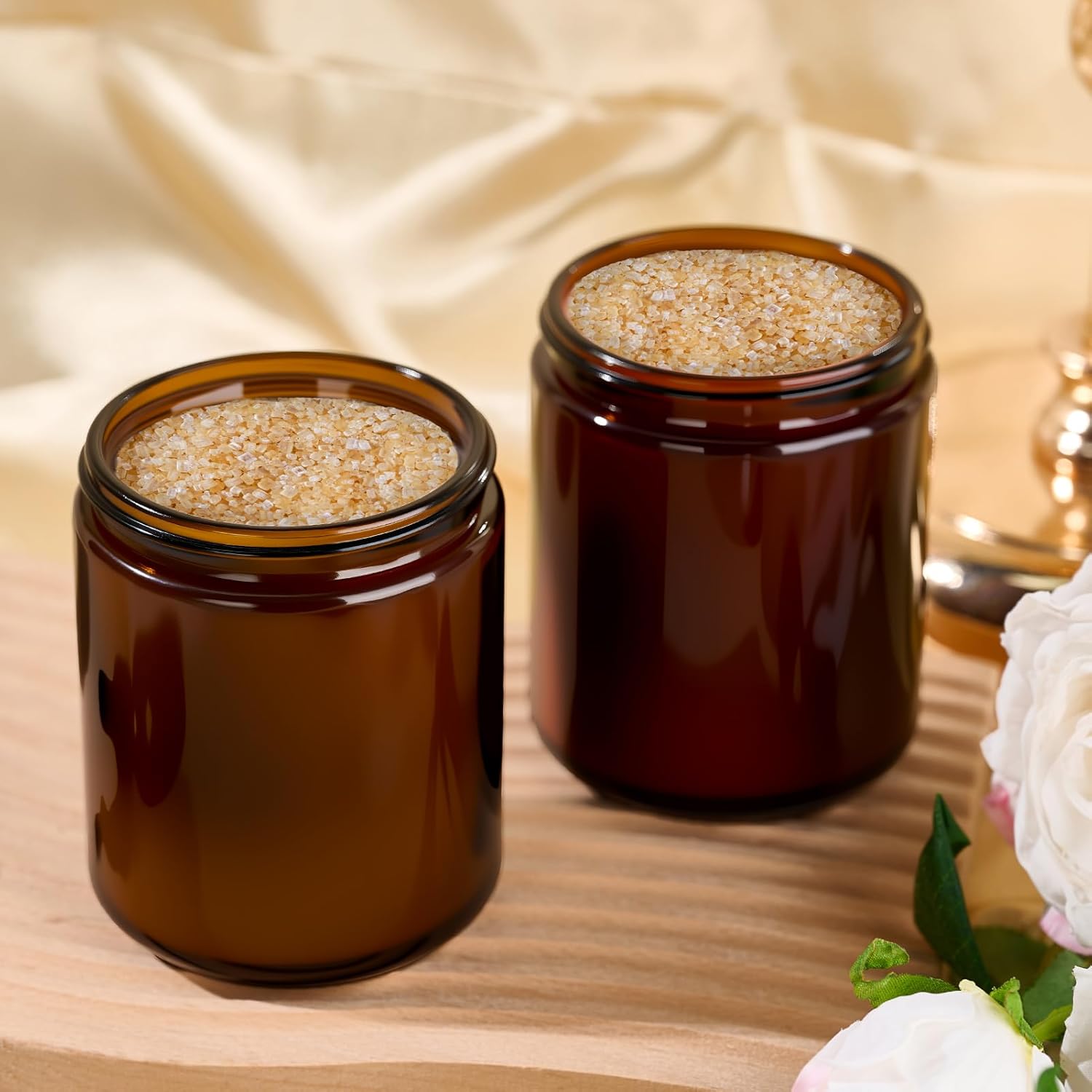 Hoa Kinh 8oz Amber Glass Jars with Lids - 2Pack Empty Airtight Storage Containers for Candle Making, Cosmetic, Spices, Crafts, Food - Refillable, UV Protection, Black Plastic Lid