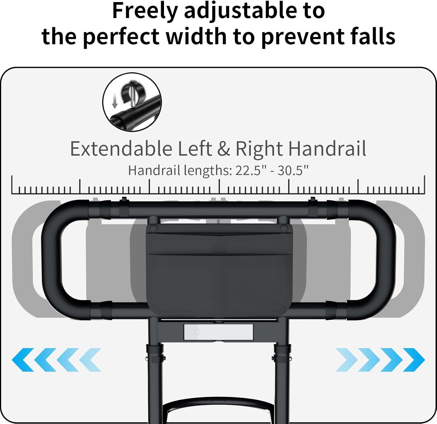 - Bedrails for Elderly Adults Grab Bar Bed Handrails: The bed rails for elderly adults safety are paired with two freely adjustable left and right grips to prevent falls. Both sides are adjustable in 5 levels, 0.5 inches per level from 22.5 inches to 30.5 inches.