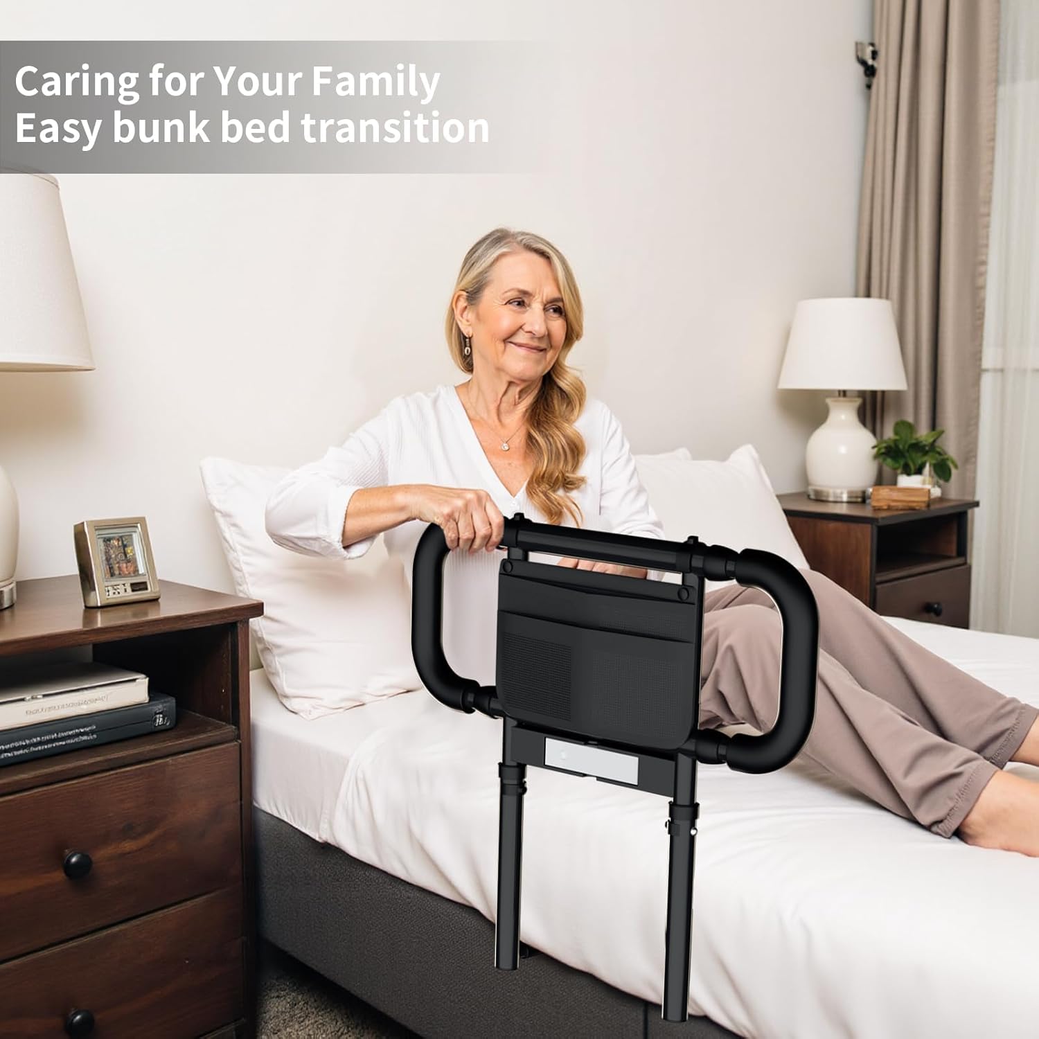 Bed Rails for Elderly Adults Safety: Elderly Assistance Products with Adjustable Double Grips, Storage Pocket, Motion Sensor Light, Items for Elderly Bed Rail, Can Withstand 300lb(Black)