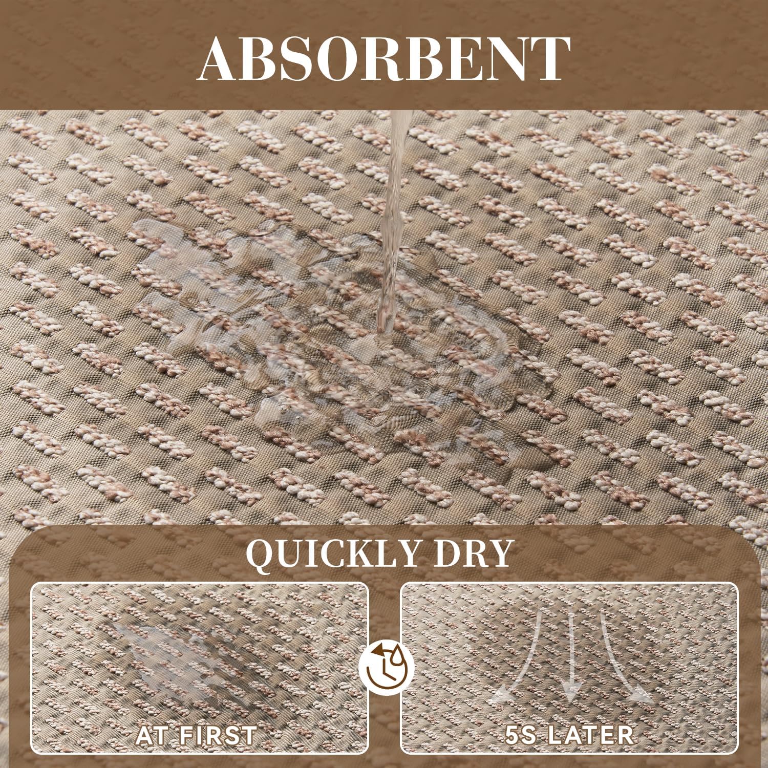- No-pile Surface: The no-pile surface prevents hair and dirt from getting embedded, making it an ideal non-shedding bathroom rug for households with high foot traffic. The jaquard dots design not only adds aesthetic but also ensures long-lasting durability in use.