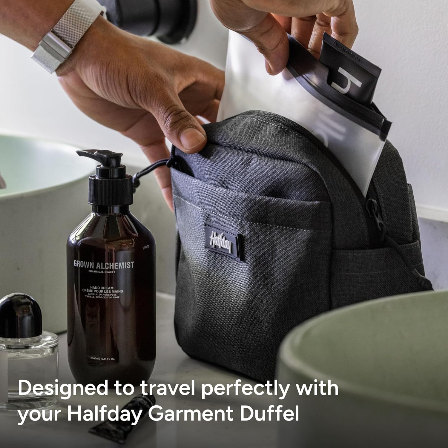 Halfday Sidecar Toiletry Bag | Travel Organizer for Men & Women with Waterproof Pouch, Mesh Pockets, Toothbrush Holder, Hanging Loop (Lightweight, Durable, Water-Resistant), Shadow