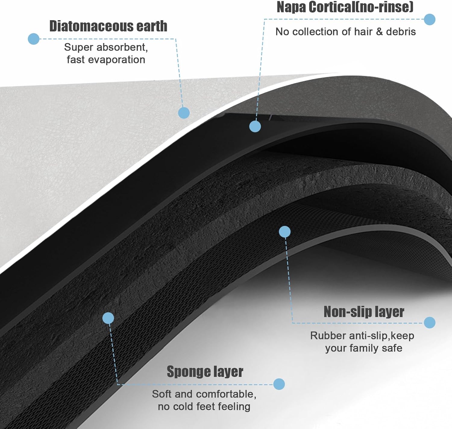 - 【Easy to Clean】Bath mats with new hair-free technology layer, water evaporates quickly, dirt attach to the surface,stain-resistant and easy to clean. Therefore, you don’t need to dry or clean the washable bath mat every day. If you want to clean it after long-time use, simply wipe the washable bathroom rugs with a wet cloth, or rinse it with shower nozzle. The bath rug for bathroom looks as good as new now