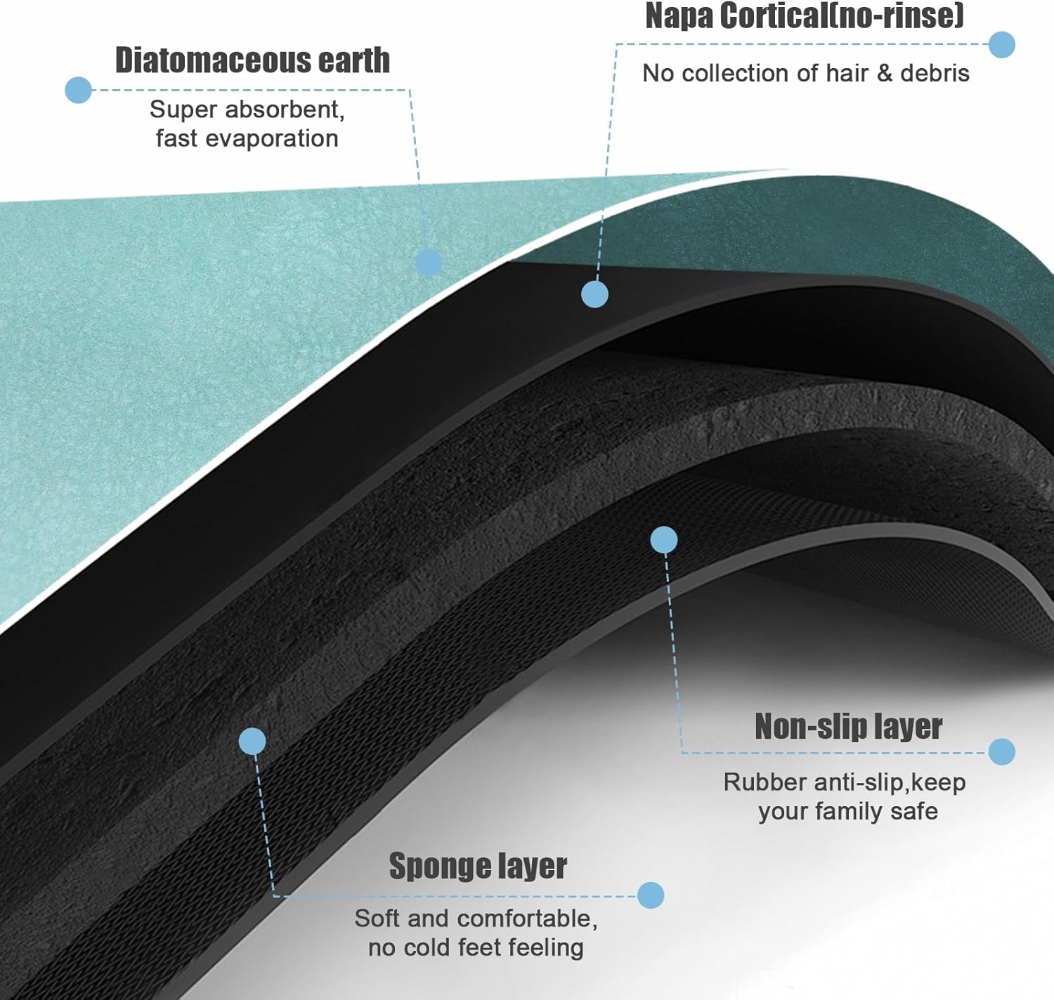 Diatomaceous Earth Bath mat Bathroom Rugs Super Absorbent Quick Dry Non Slip Bath Mat Thin Bathroom Floor Mats Fit Under Door-Shower Rug for in Front of Bathtub Shower, Green, 19.6"x31.5"